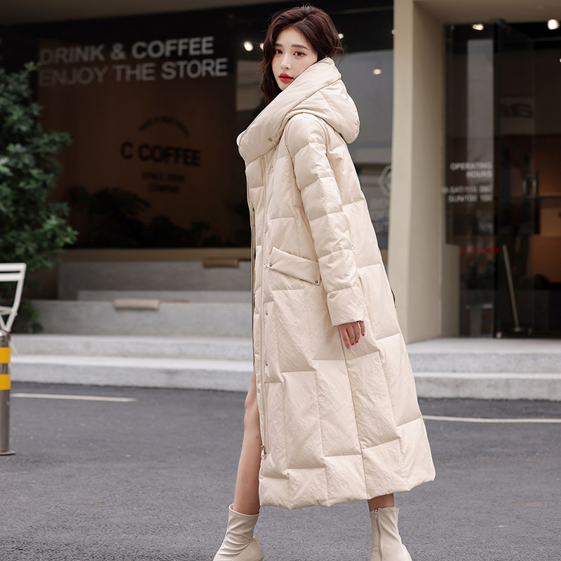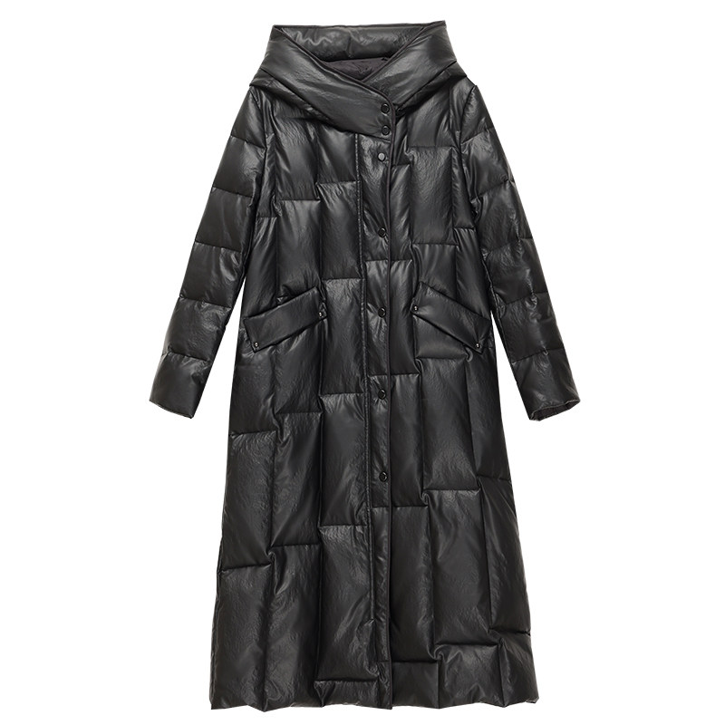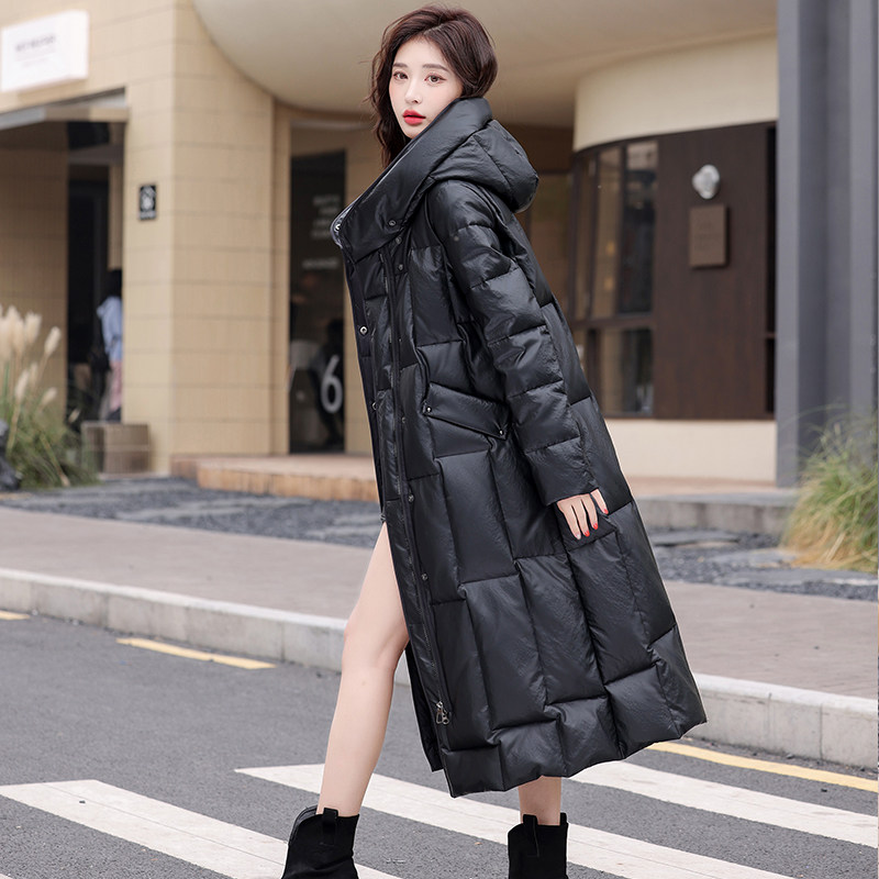 2025冬季新款海宁真皮羽绒服女中长款绵羊皮连帽简约宽松大码外套