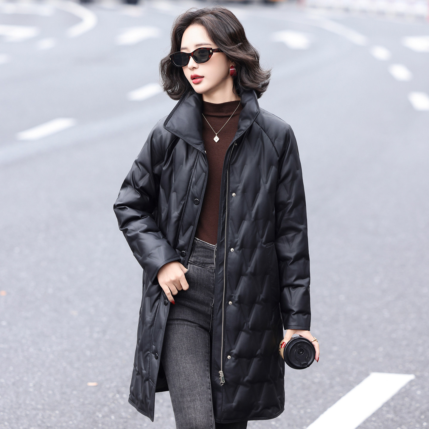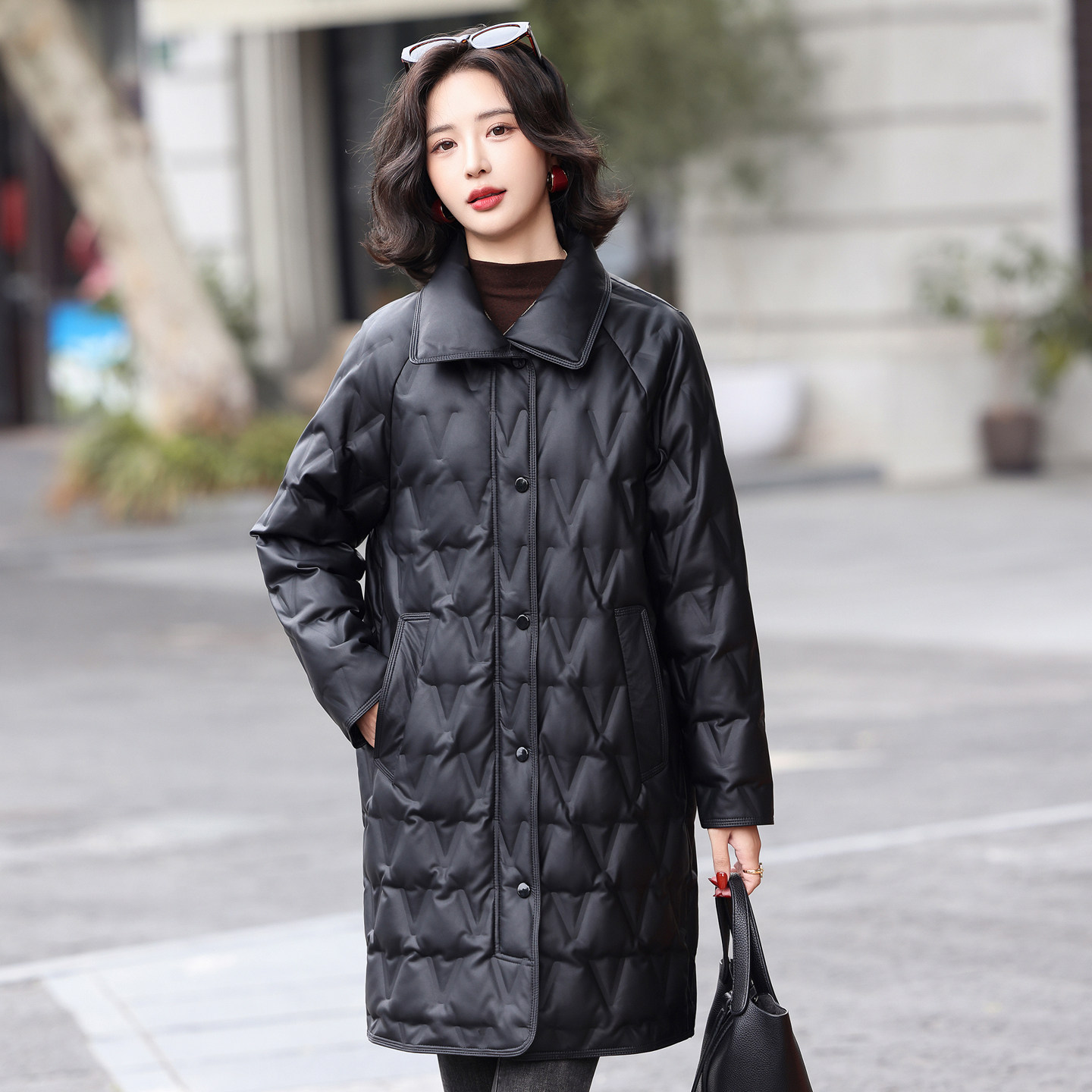 皮羽绒服女中长款冬季新款抗寒保暖防真皮绵羊皮大衣女式皮衣外套