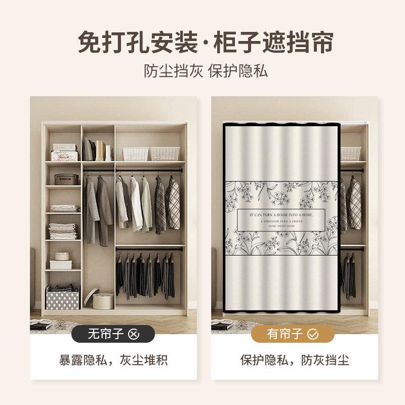 311线报网描述:无门衣柜橱柜衣帽间遮挡帘拉帘 免打孔