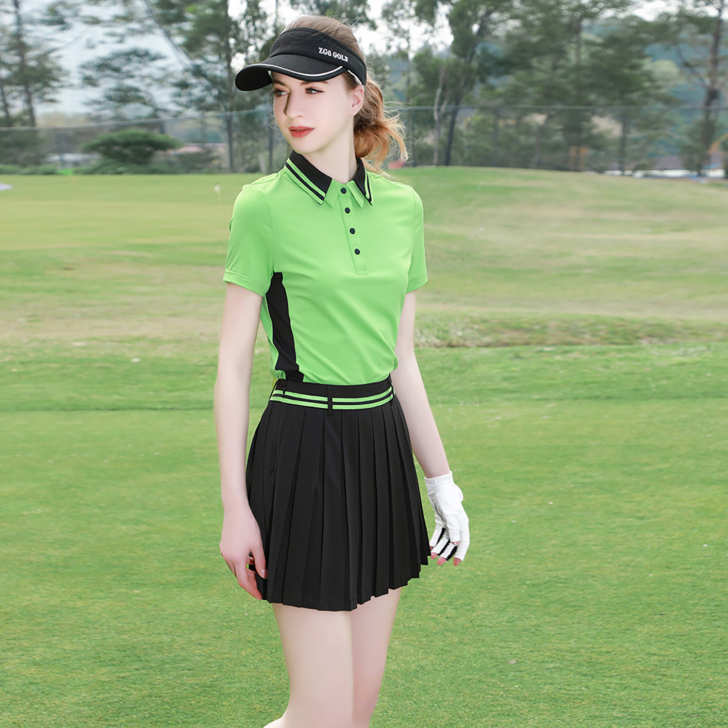 ZG6高尔夫女装球服装女速干绿色短袖T恤网球服女黑色显瘦百褶裙子