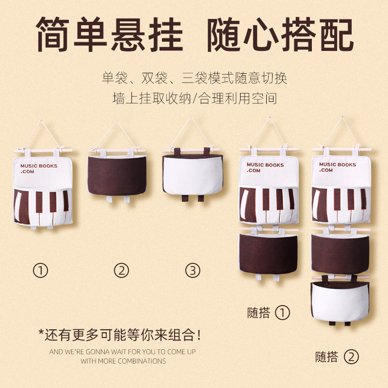简欧文艺墙挂式布艺收纳挂袋门后床头墙上壁挂杂物储物袋加大容量