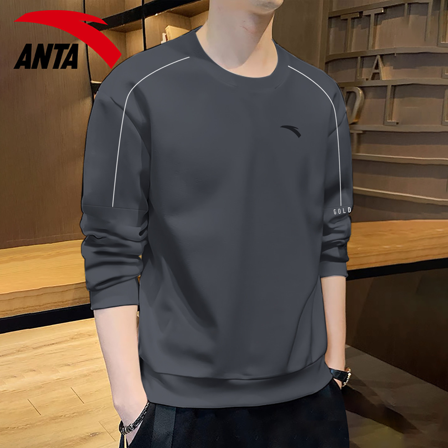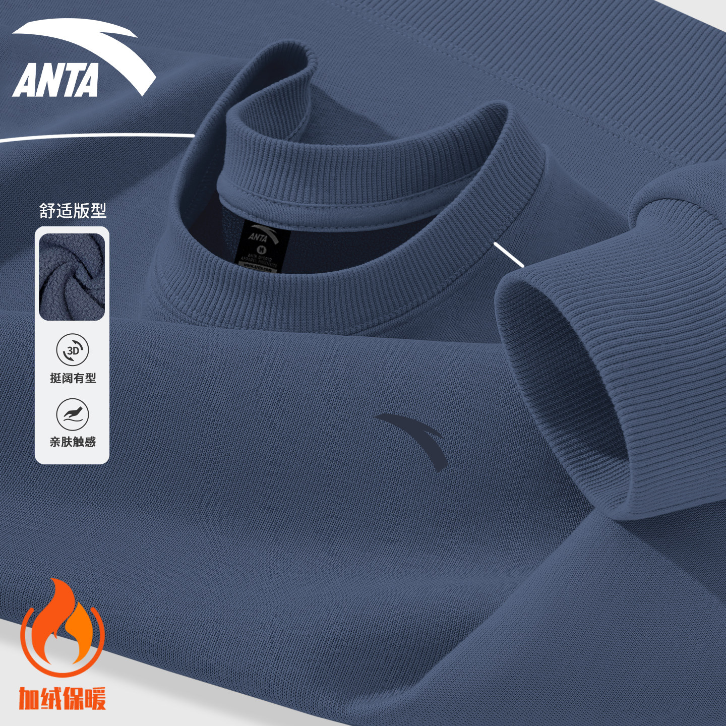 安踏运动卫衣男长袖舒适加绒保暖圆领灰色冬季新款大码打底衫百搭