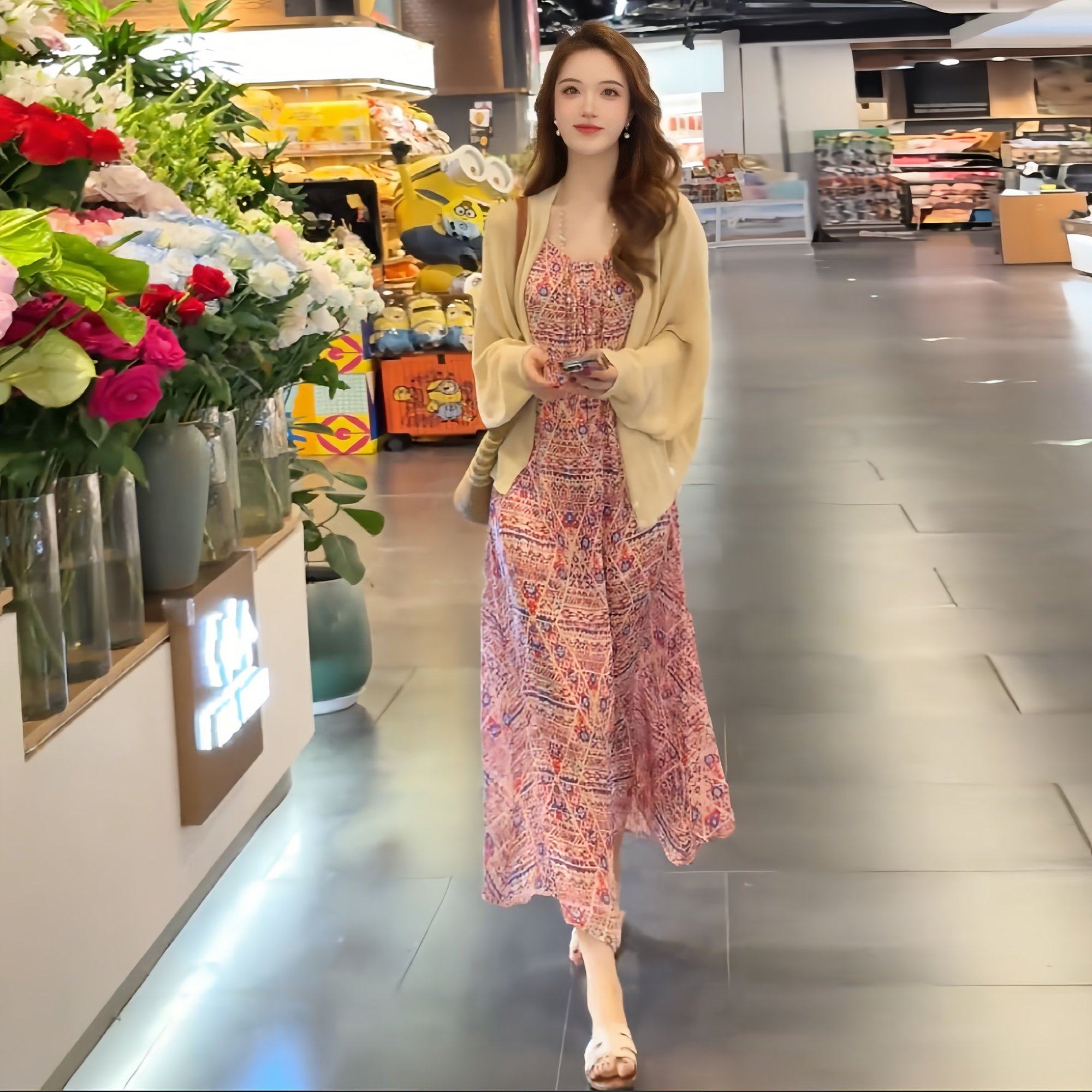 高级感时尚宽松吊带裙两件套女2026夏季新款中长款遮肚连衣裙套装