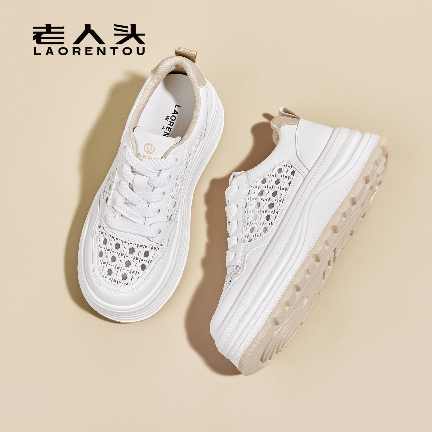 【厚底增高+5CM】老人头2026春季新款小白鞋女款休闲鞋百搭板鞋女