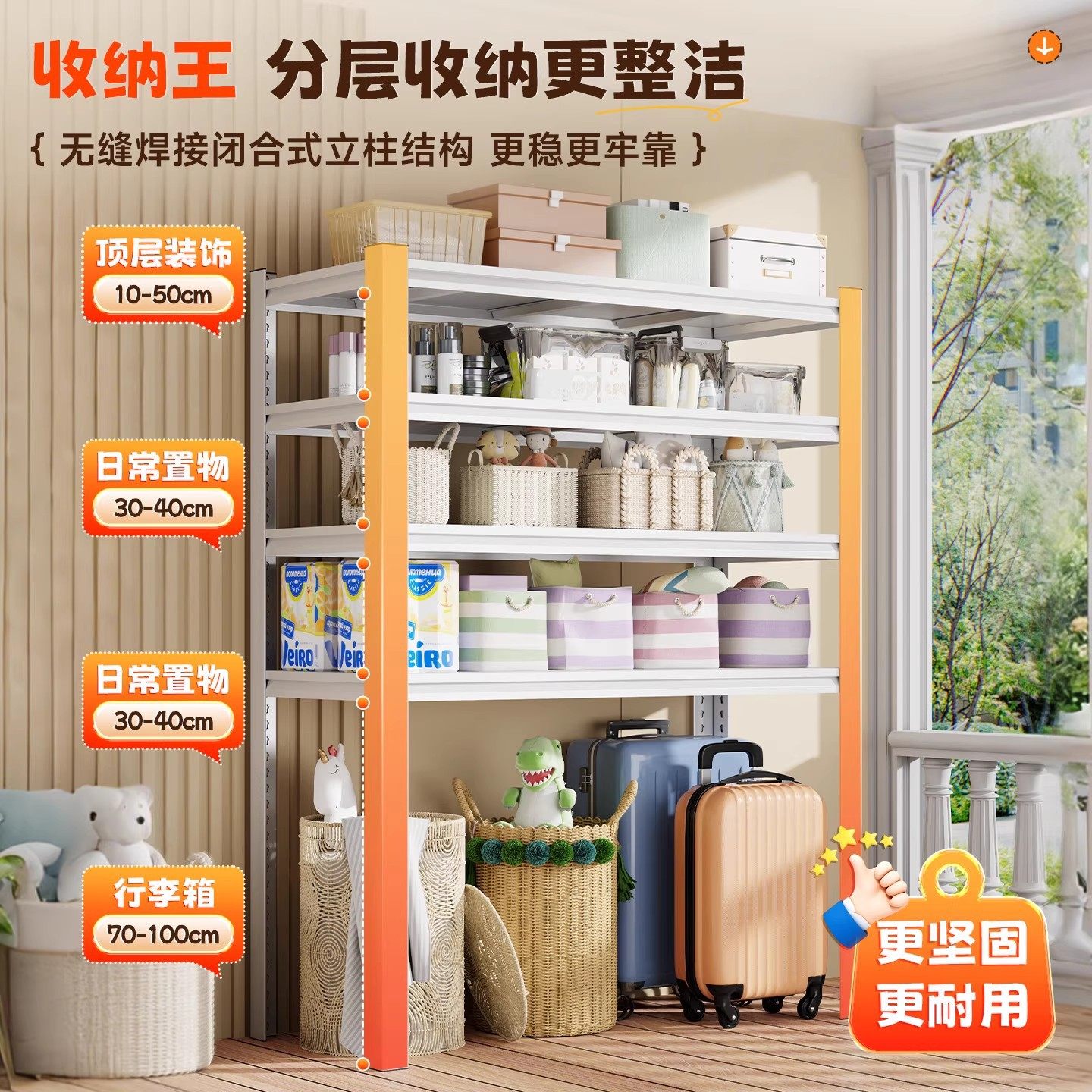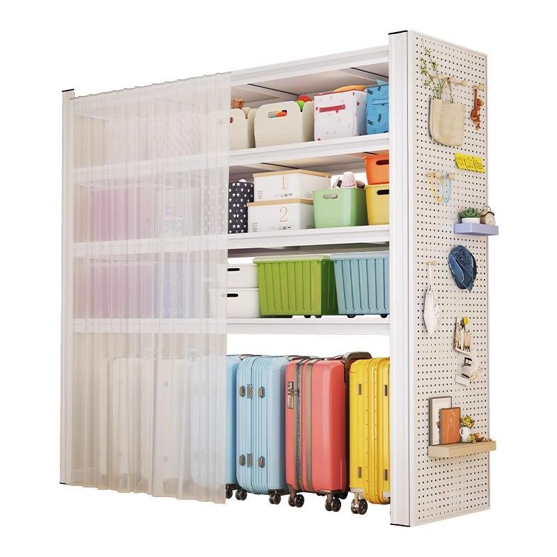 带防尘帘家用置物架多层储物架阳台收纳架货架储藏间一体靠墙铁架