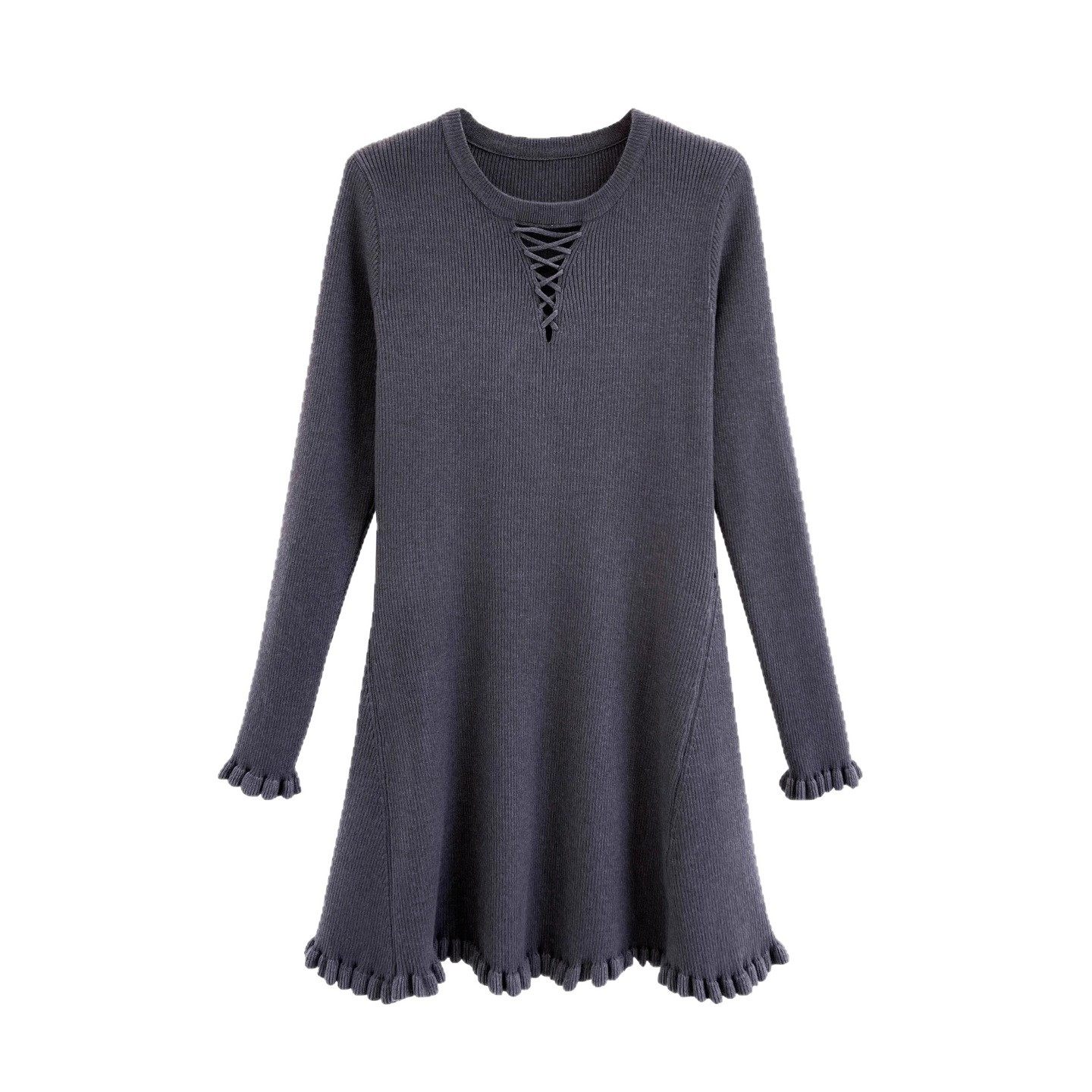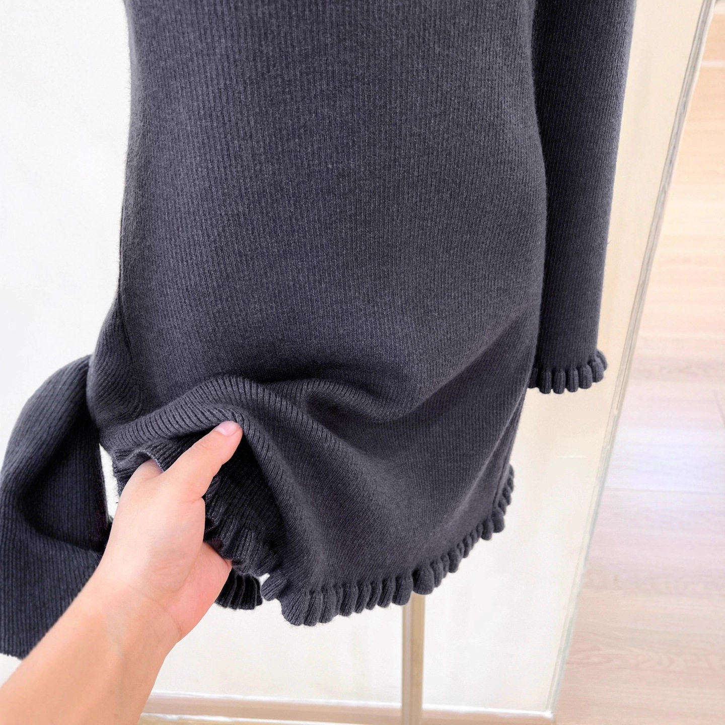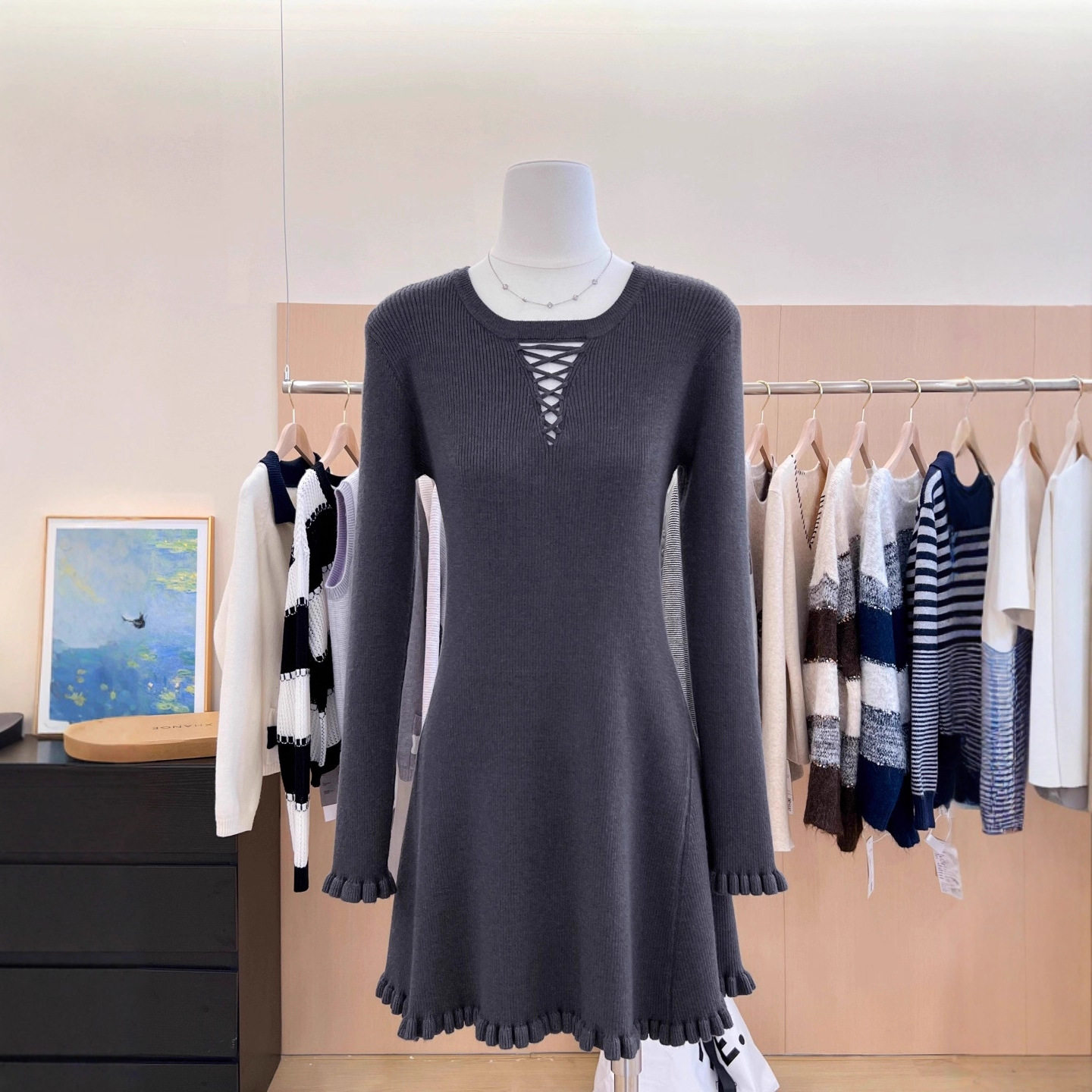 小个子穿搭高级感灰色镂空针织连衣裙女秋冬季内搭修身收腰短裙子