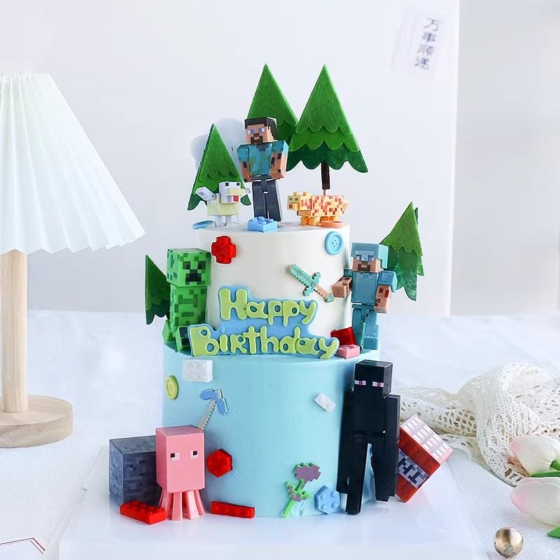 我的世界蛋糕装饰摆件男孩生日主题DIY积木拼装玩具游戏主题装扮