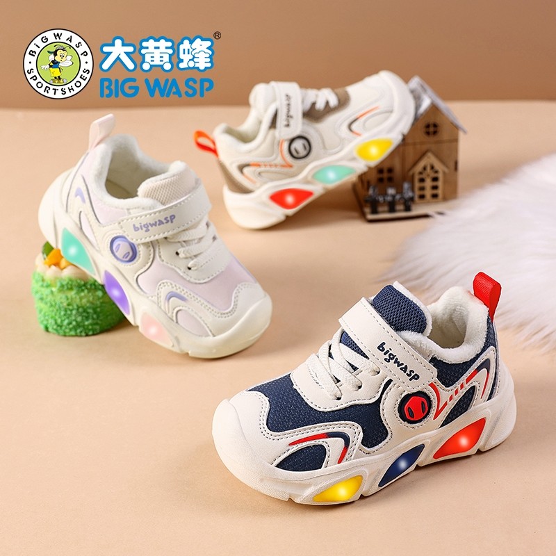 大黄蜂童鞋冬季男宝宝鞋子棉鞋小童灯鞋女运动加绒保暖儿童机能鞋