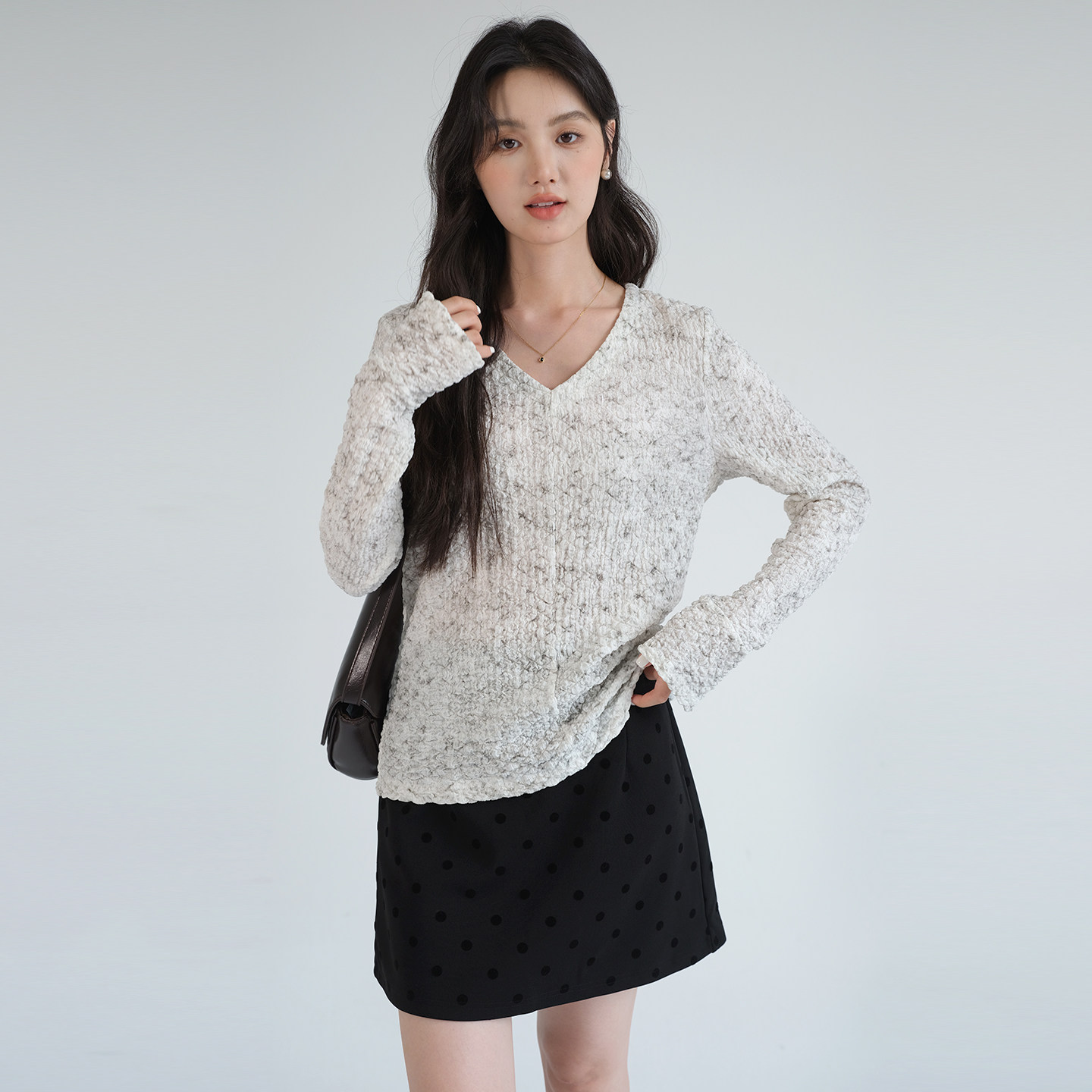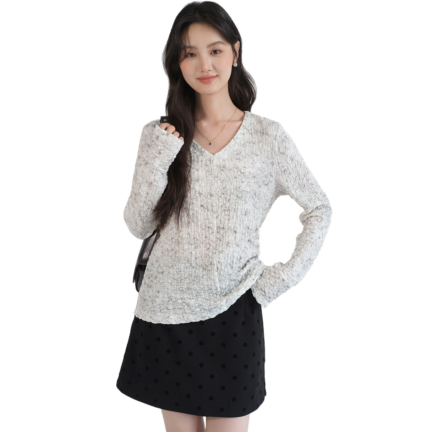311线报网描述:法式V领晕染肌理感打底衫显瘦气质长袖T恤