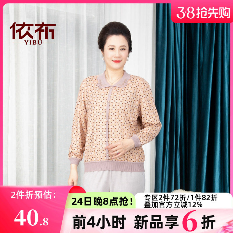 依佈中老年女装2026春季新款针织衫宽松大码妈妈装老太太打底上衣