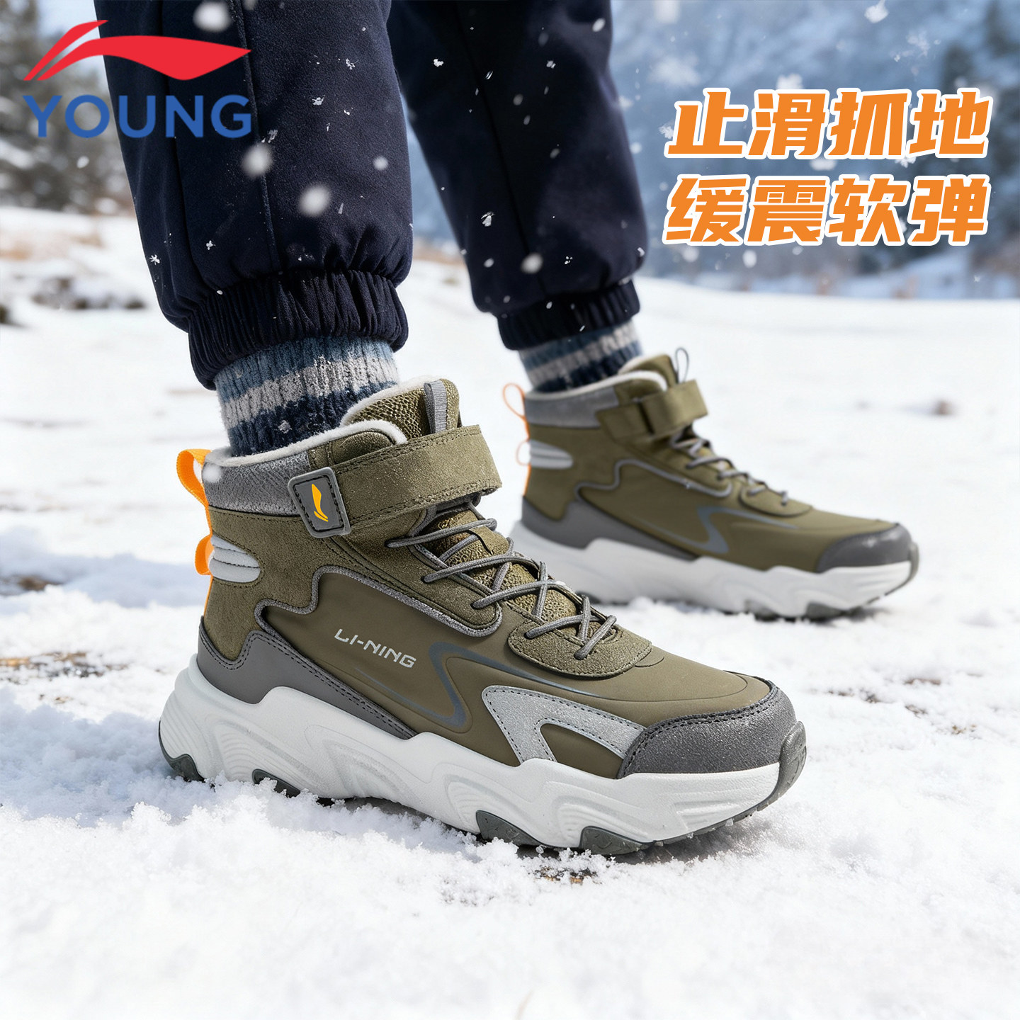 李宁儿童加绒运动鞋男童冬季新款青少年防滑加厚保暖大棉鞋雪地靴