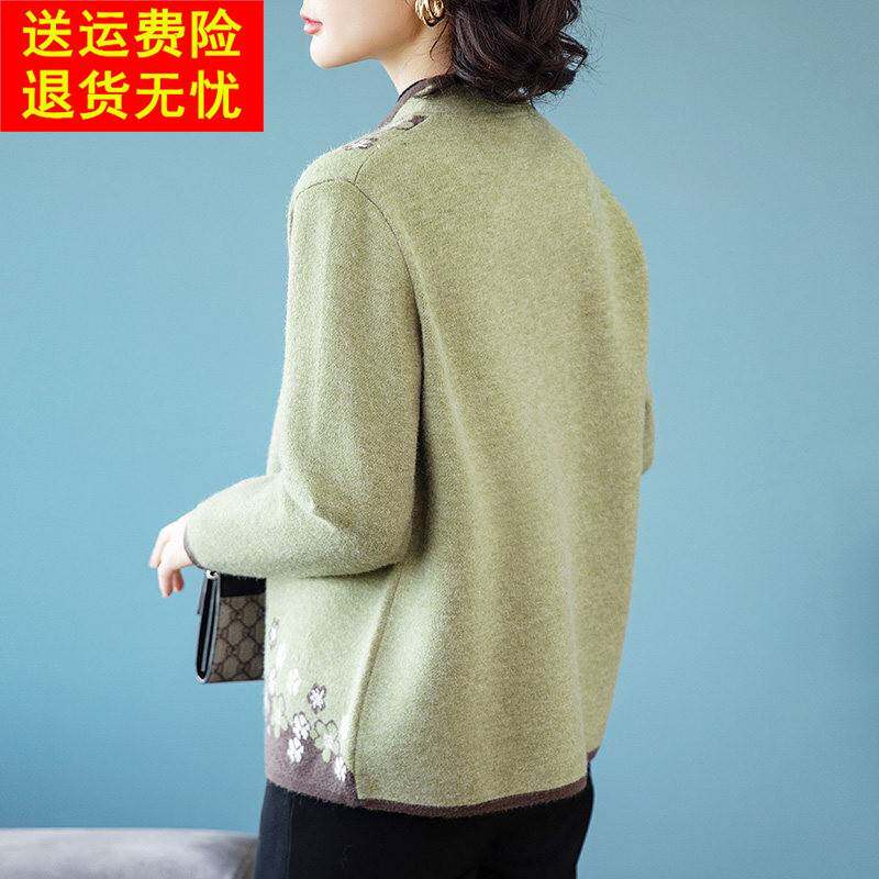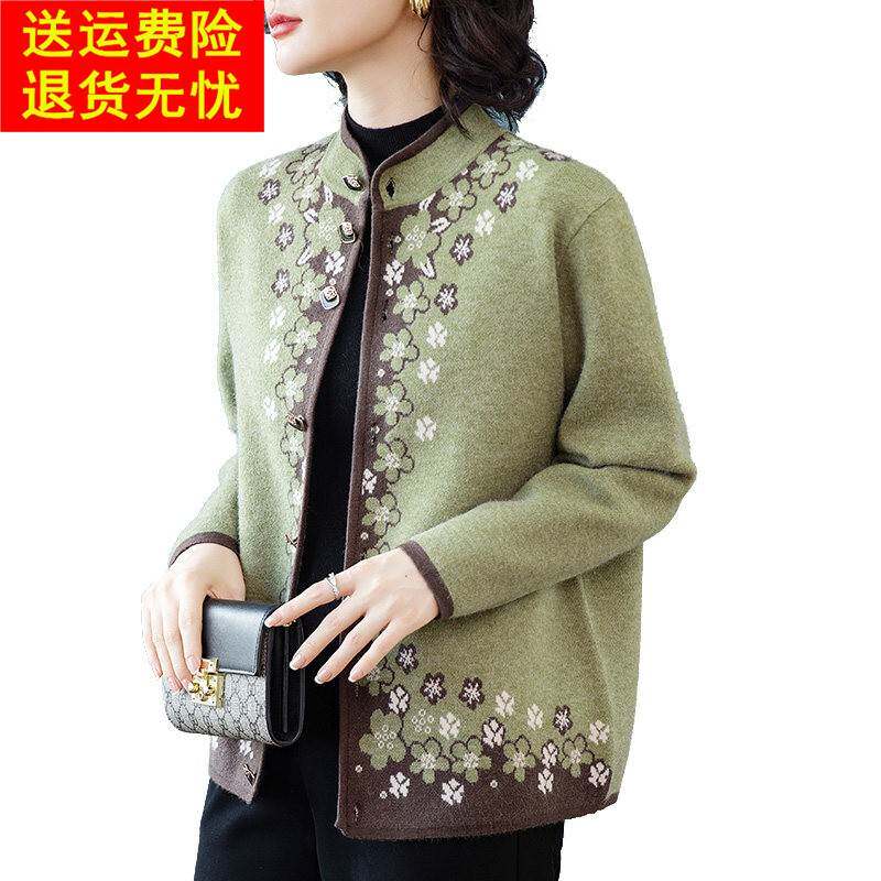 新款中年妈妈春装外套时尚洋气短款上衣中老年女春秋毛衣开衫50岁