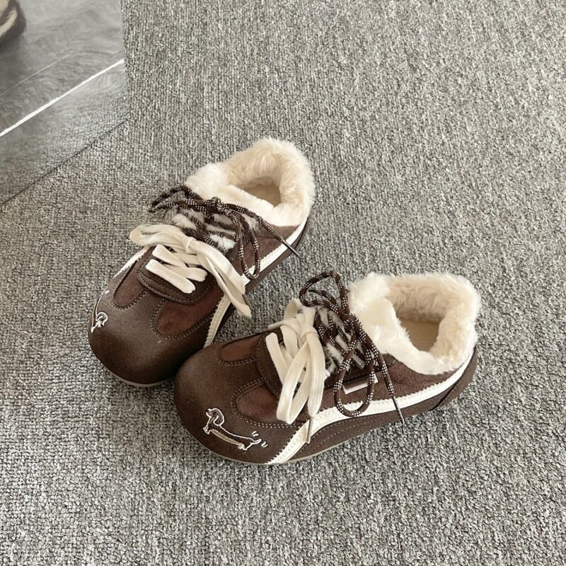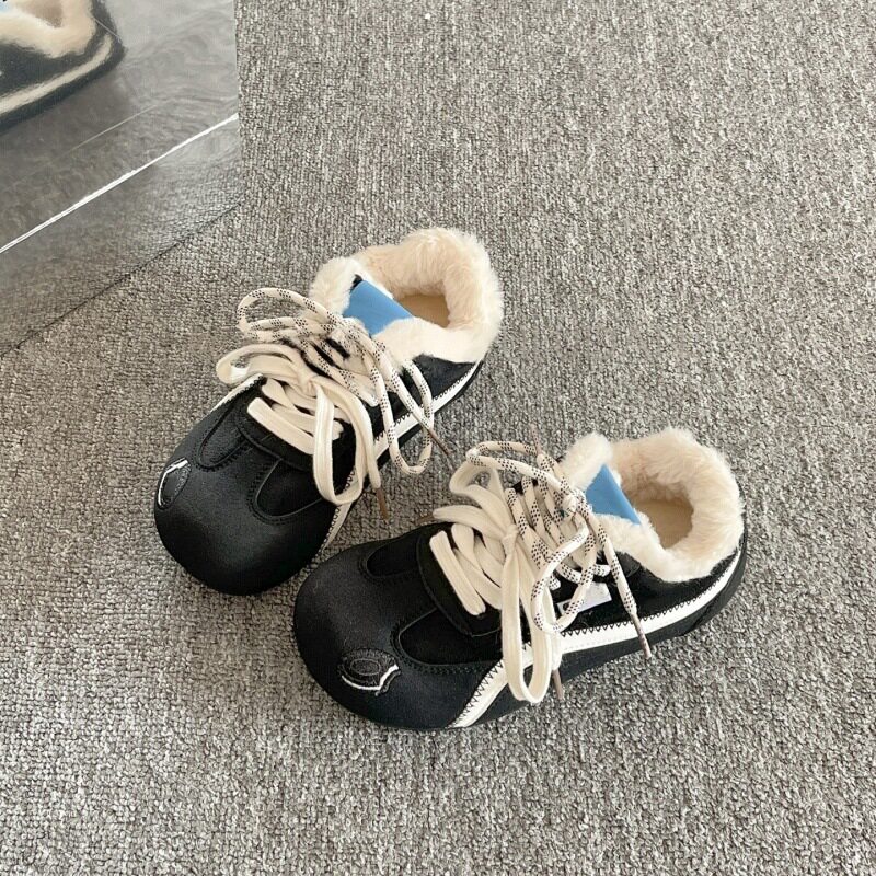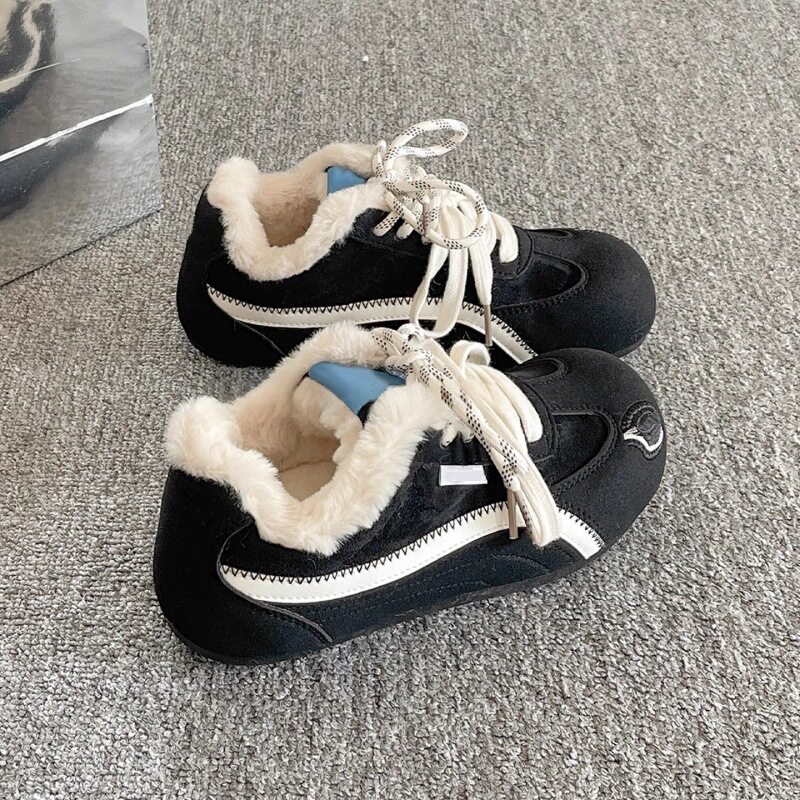 加绒德训鞋女款2026冬季新款学生百搭保暖二棉鞋平底休闲运动板鞋