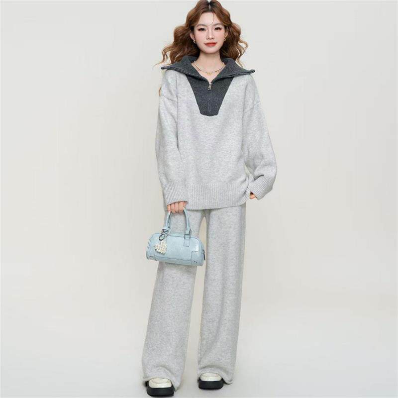 高级感穿搭套装冬装2025新款时尚洋气时髦拼接慵懒风毛衣秋冬女装