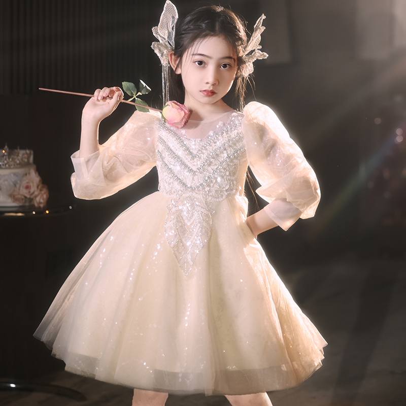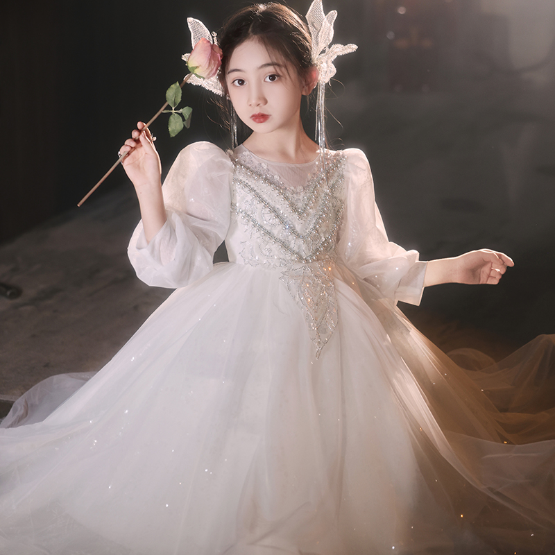 女童晚礼服轻奢小众高端儿童公主裙主持人钢琴生日婚纱高定连衣裙