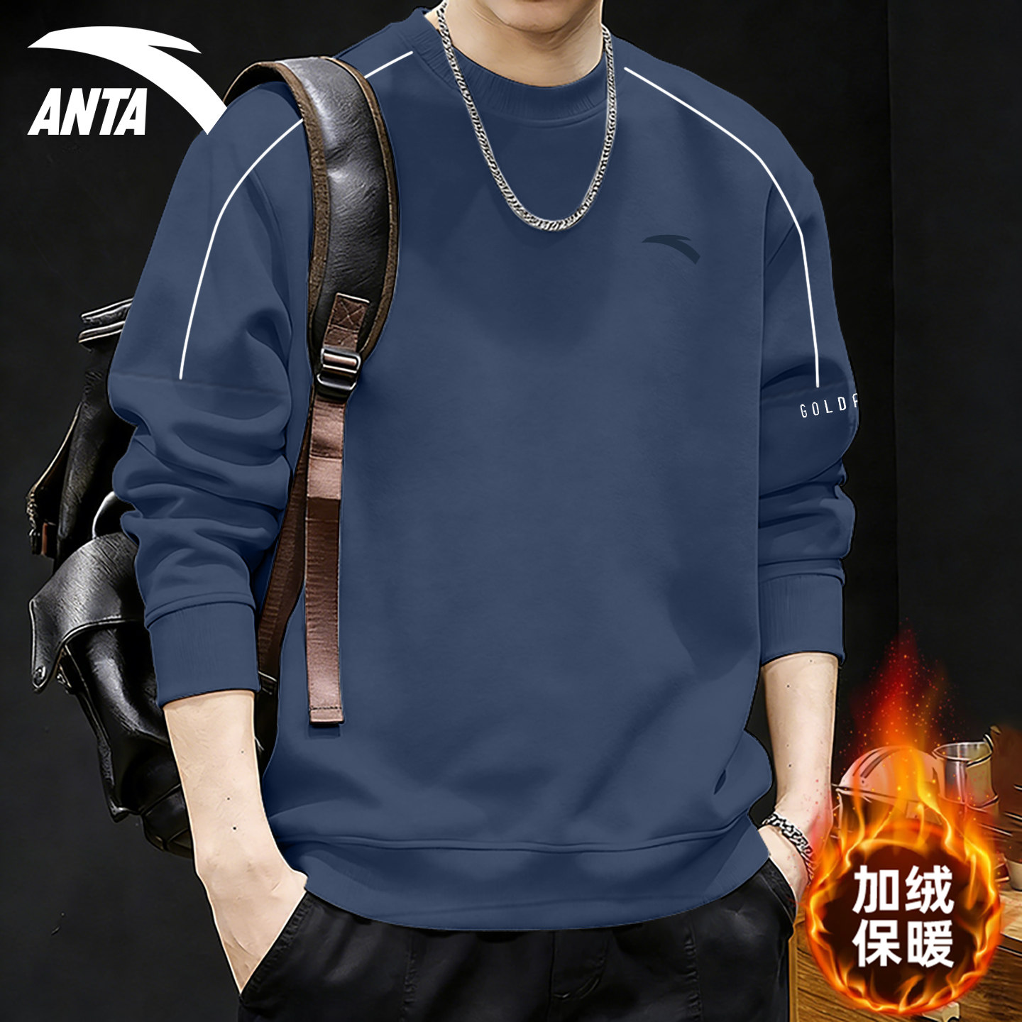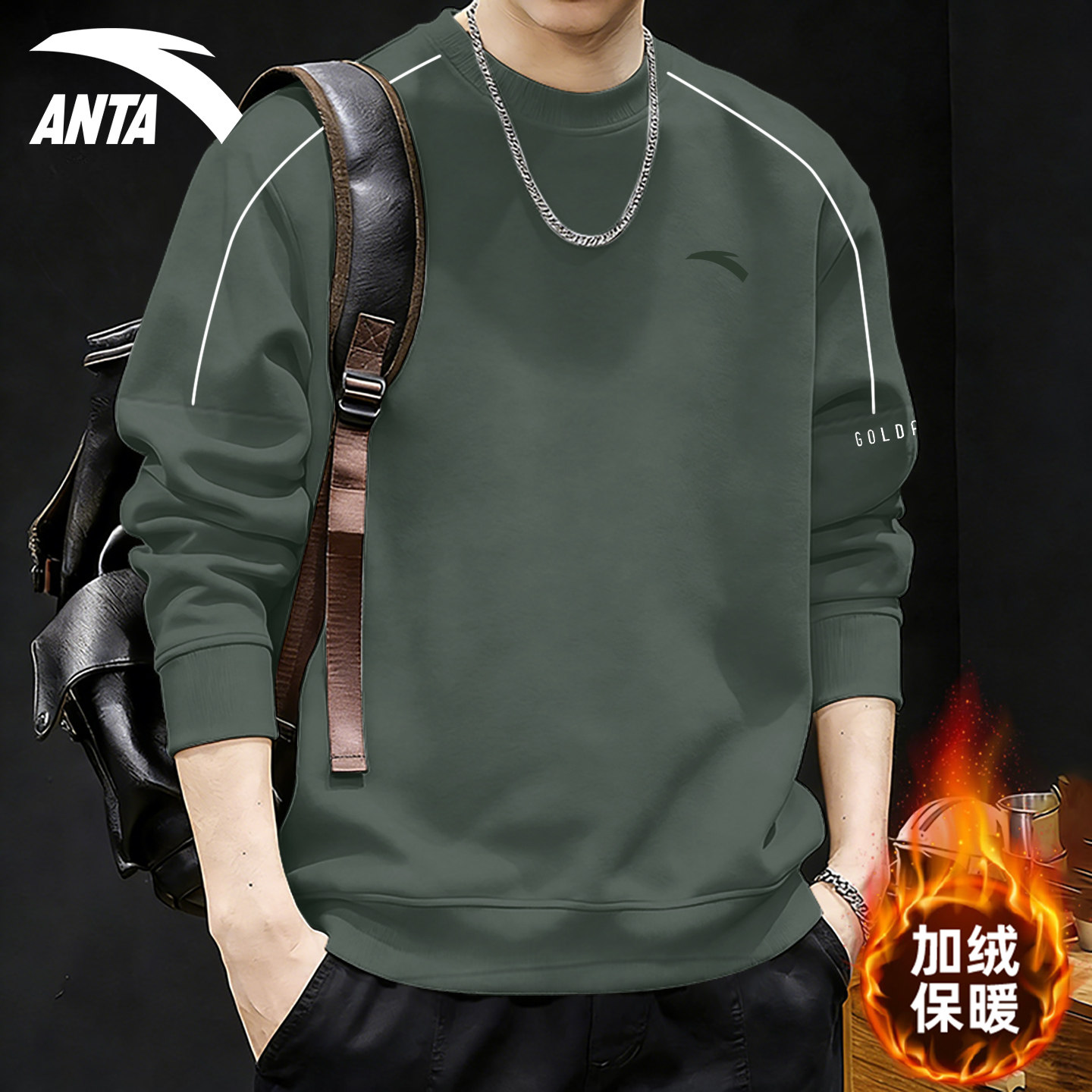 安踏加绒加厚男士卫衣男款2026新款冬季休闲圆领打底衫青少年长袖