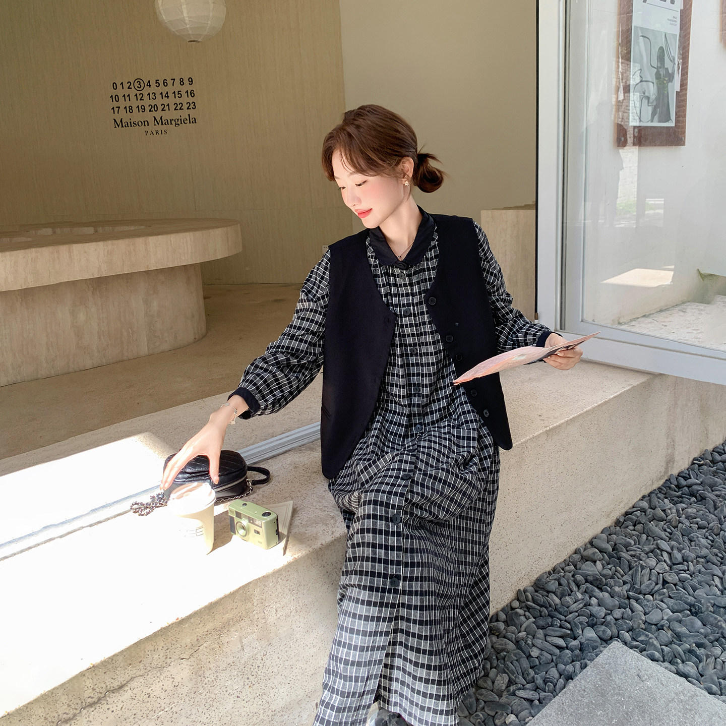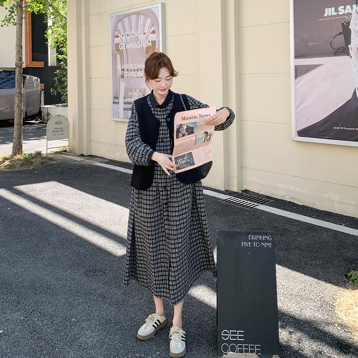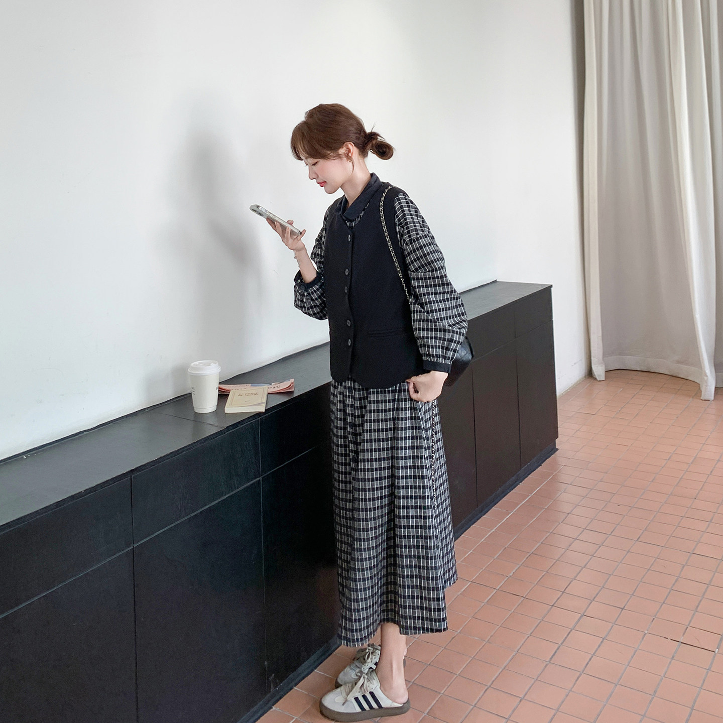 黑色马甲格子连衣裙套装女春季2026新款爆款高级感休闲学院风长裙