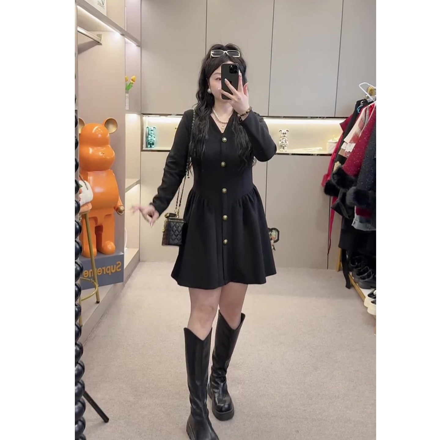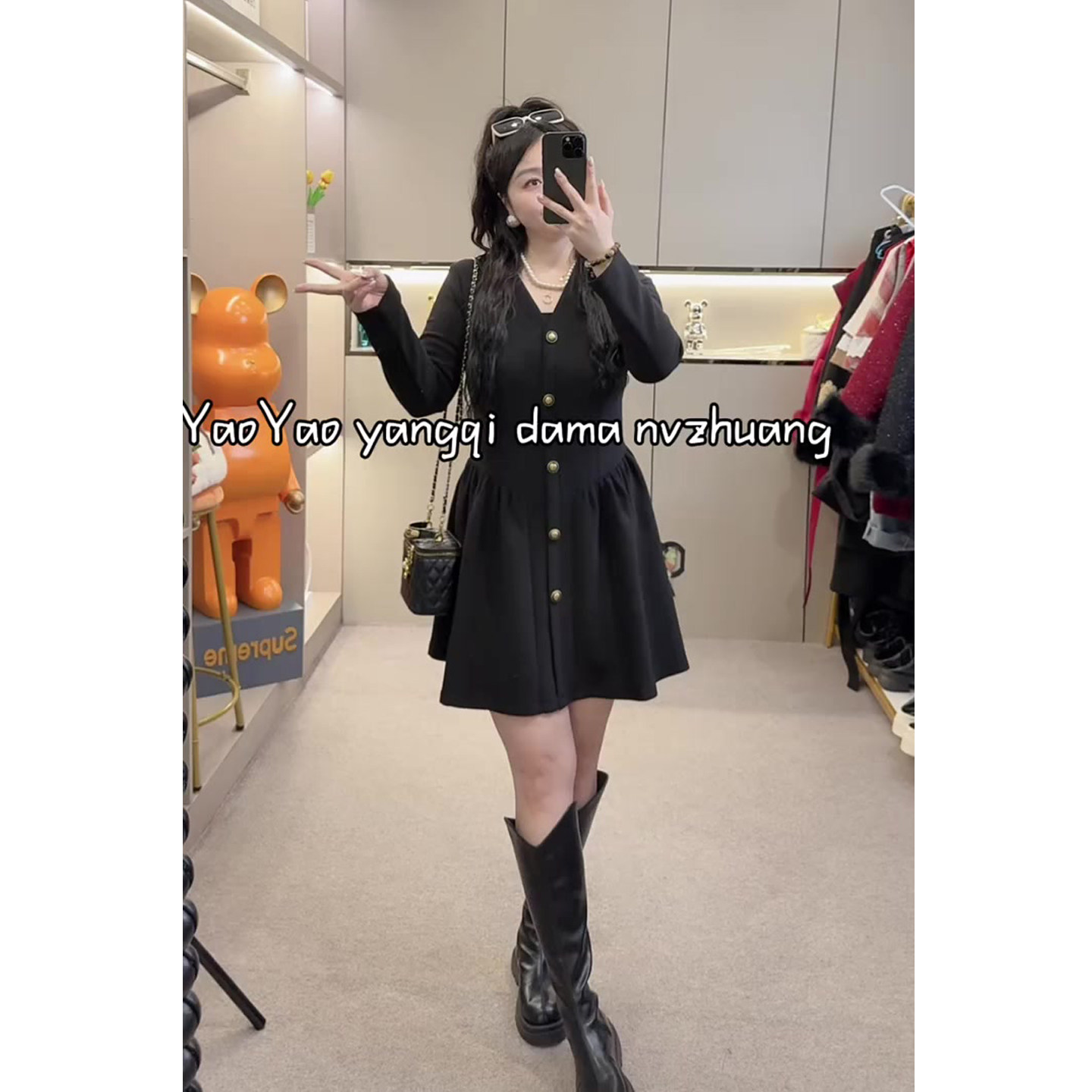 法式气质高级感连衣裙女2026春季新款V领显瘦百搭网红爆款中长裙