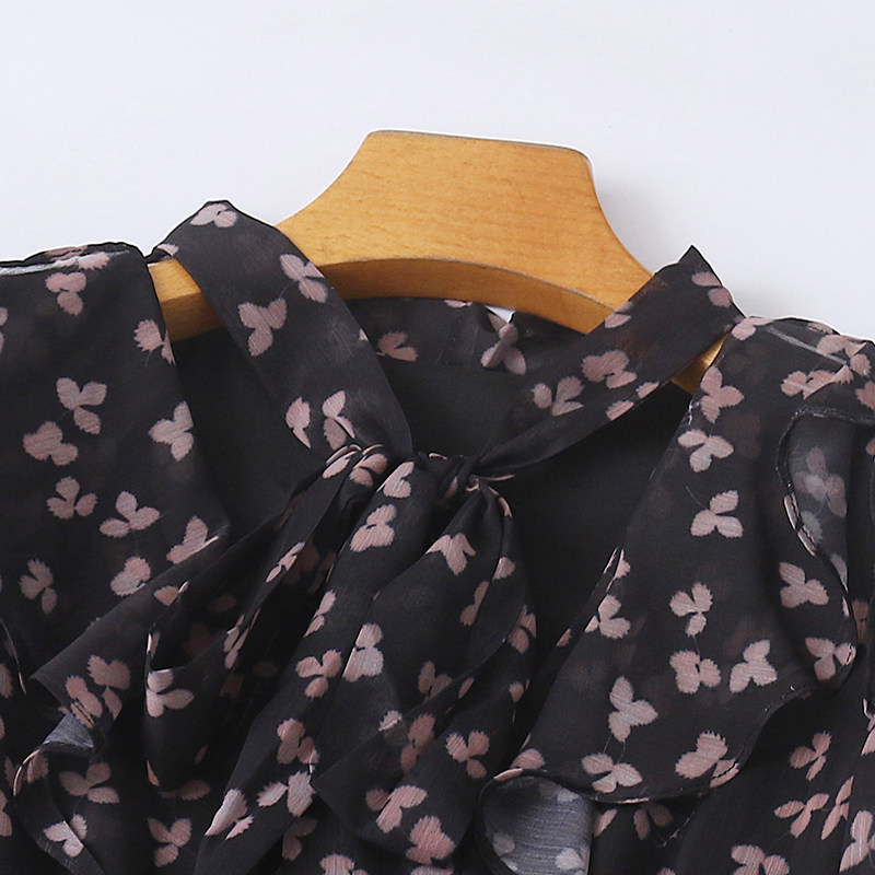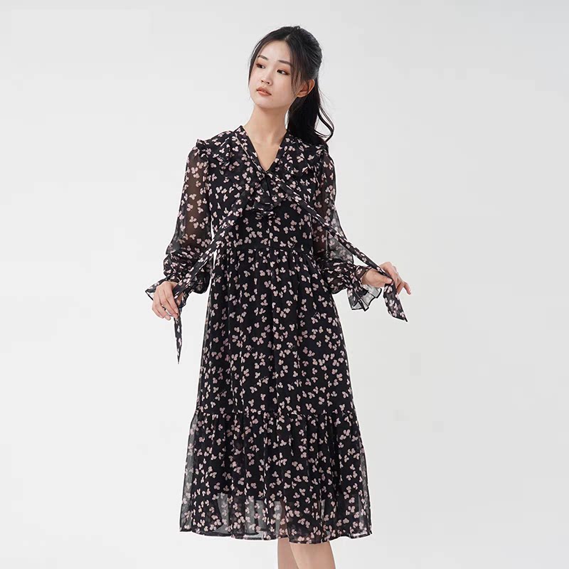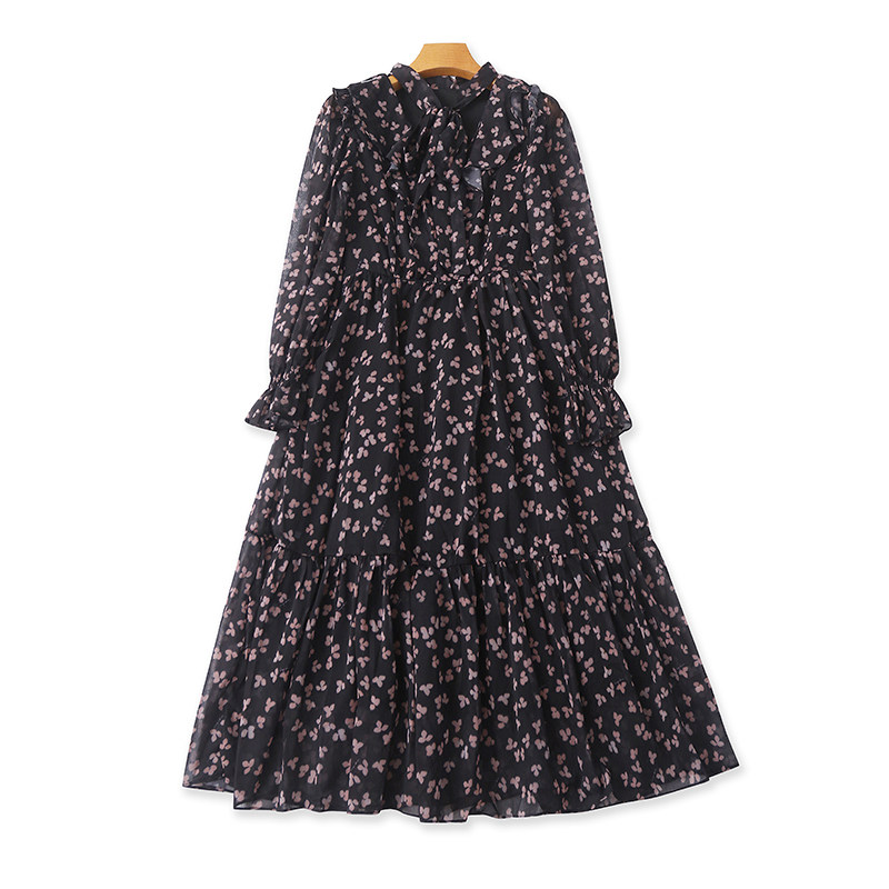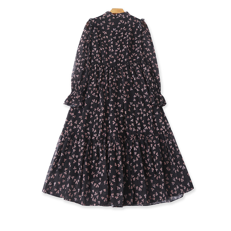 法式雪纺小立领碎花连衣裙 春秋新款长款女宽松气质长袖裙子08262