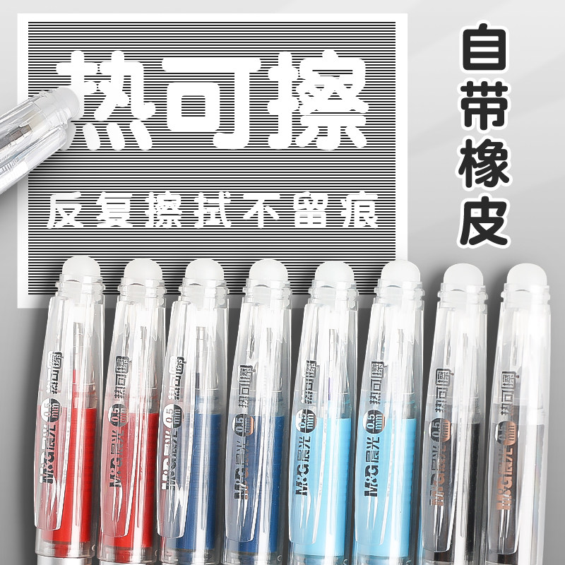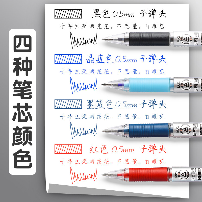 晨光可擦中性笔小学生专用三年级魔易可擦写0.5mm热敏易可擦黑色蓝色晶蓝笔芯替换芯水笔圆珠笔热可擦笔拔盖
