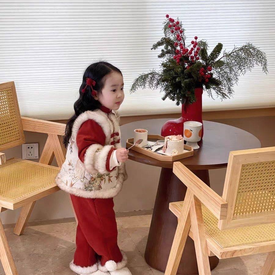 幼童拜冬年服女童拜年服套装秋冬新款儿童宝宝洋气中国风加厚唐装