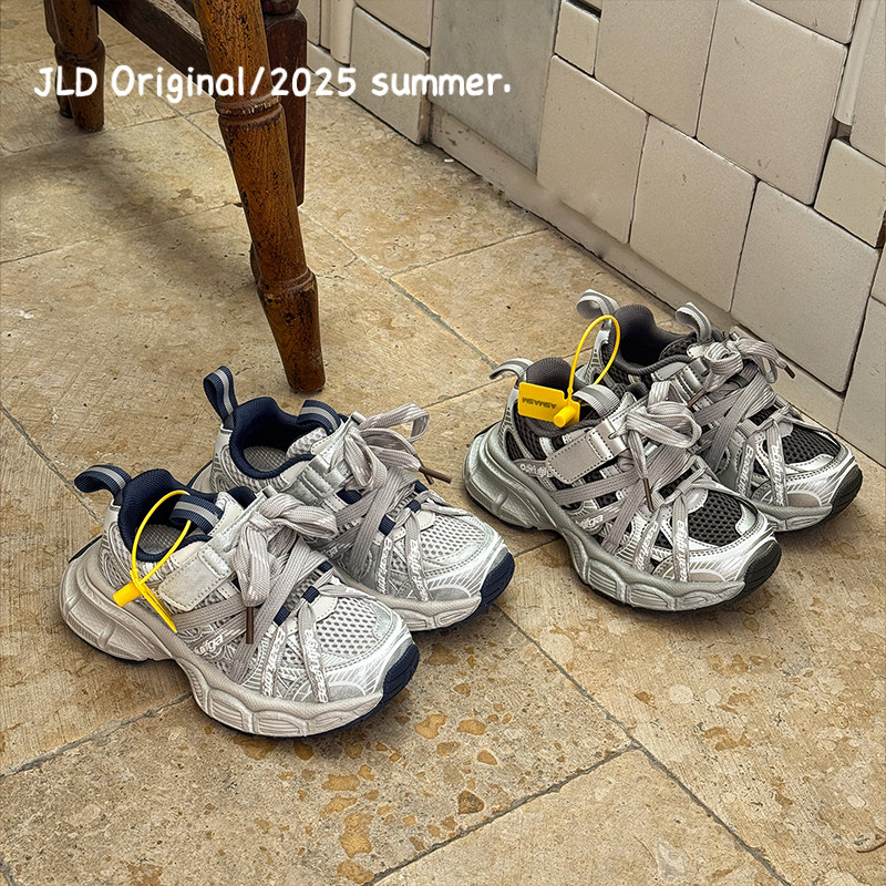 儿童轻便时尚2026新款春款运动鞋女童字母绑带透气老爹男童休闲鞋