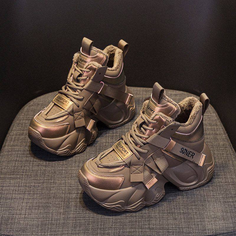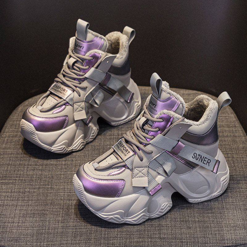 爆款秋冬老爹鞋女款渐变色高帮内增高厚底8cm炸街休闲运动鞋特惠
