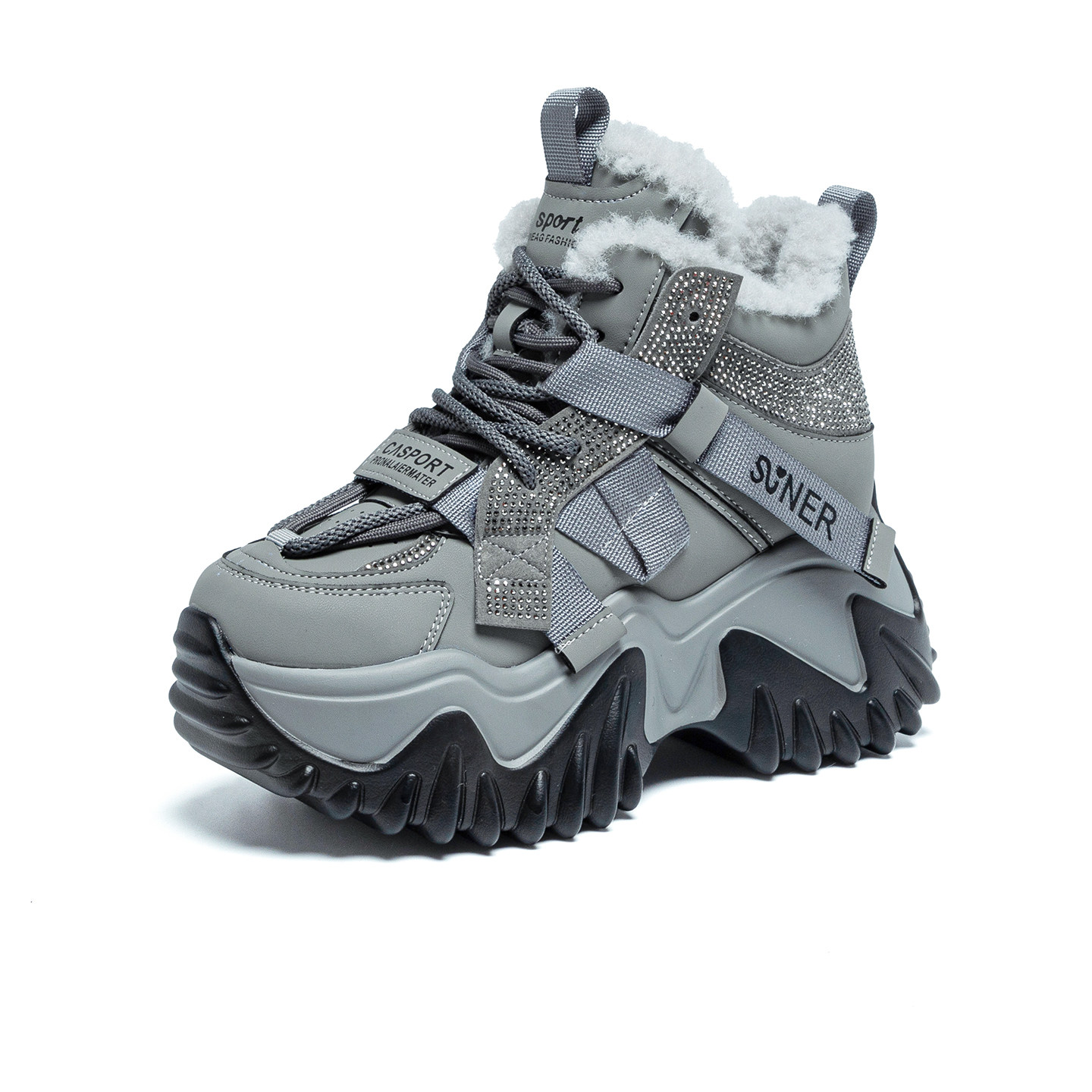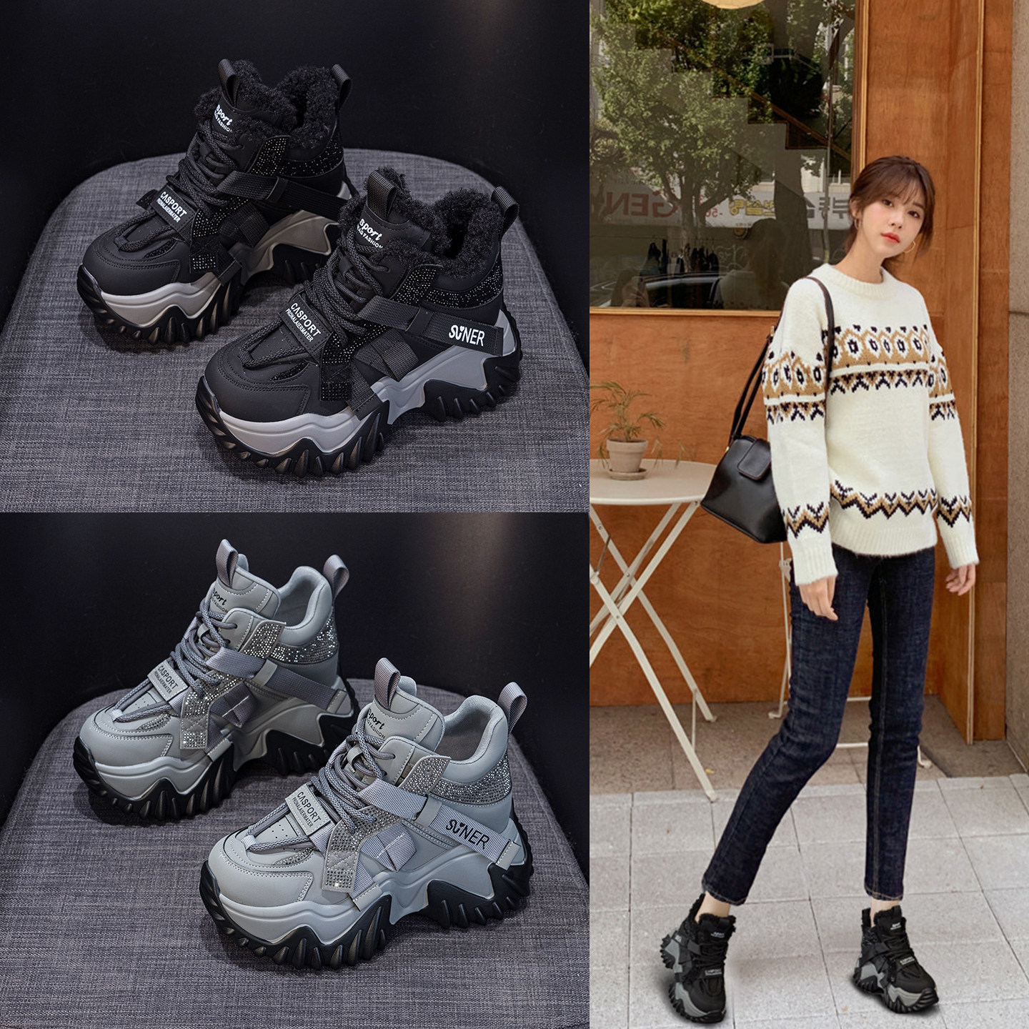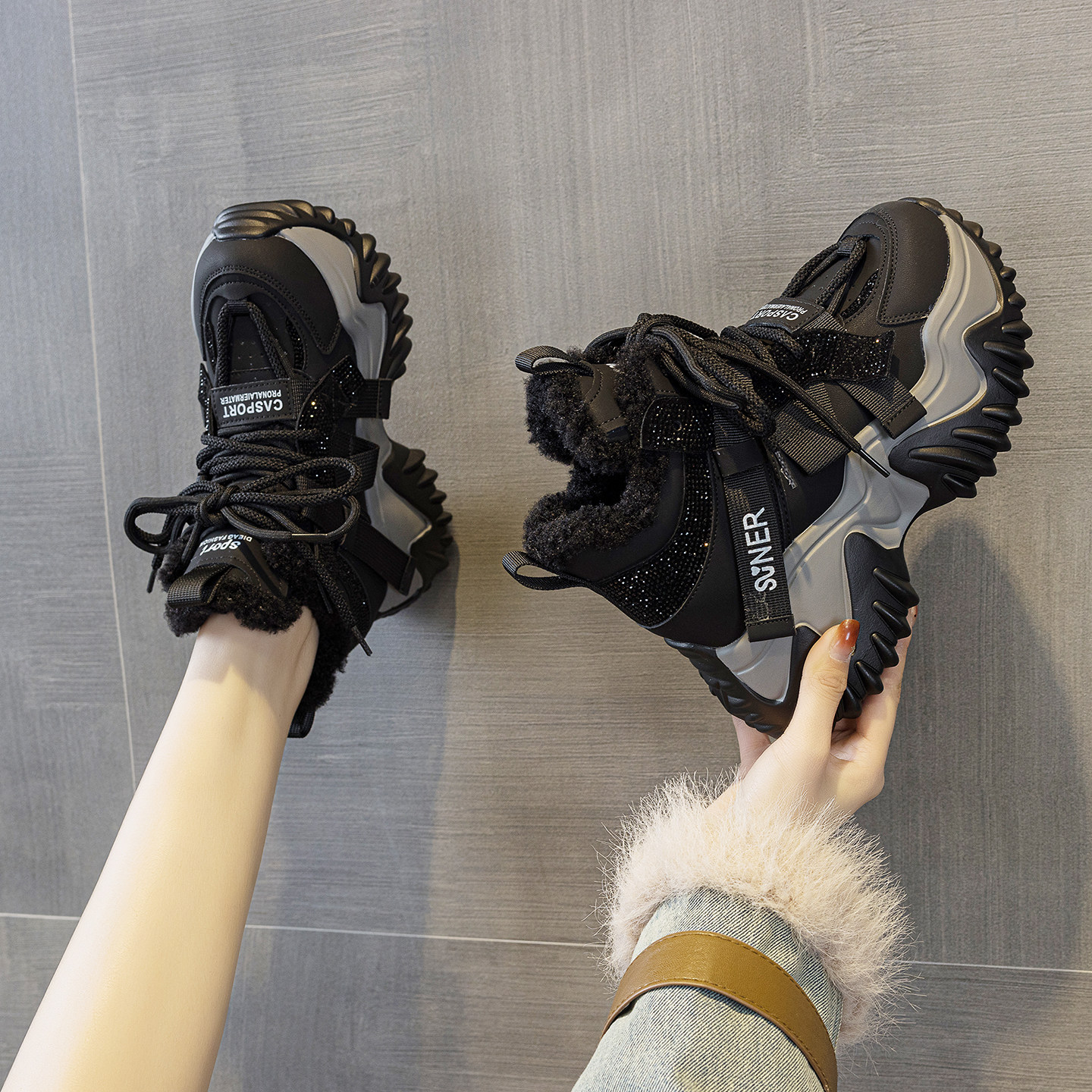 ZFCQ新款厚底内增高加绒加厚老爹鞋女款真皮2025冬季8cm高帮棉鞋