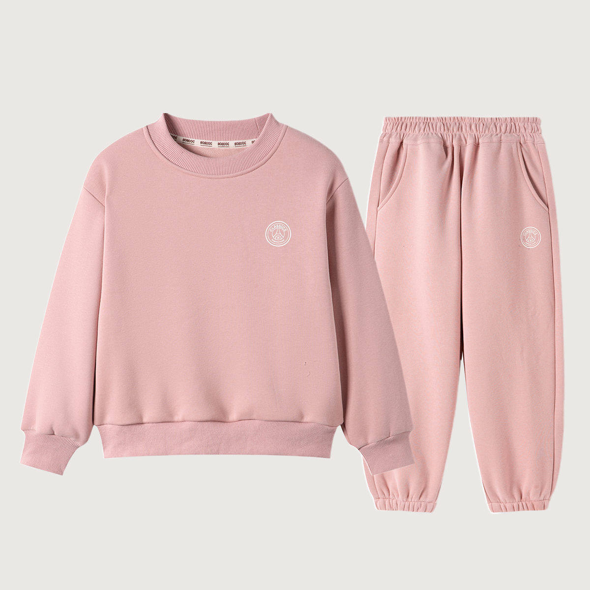 巴布豆男女童套装儿童加绒加厚卫衣卫裤两件套