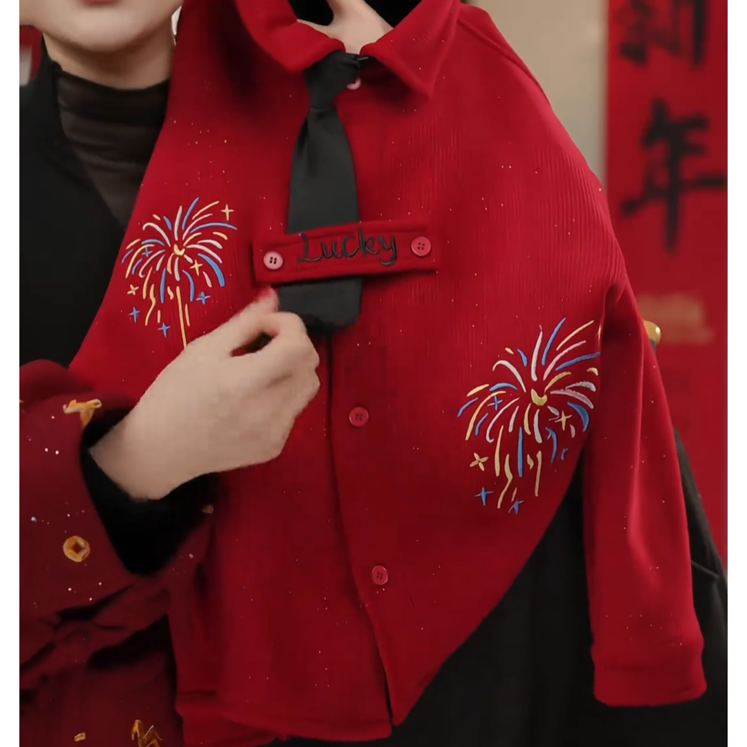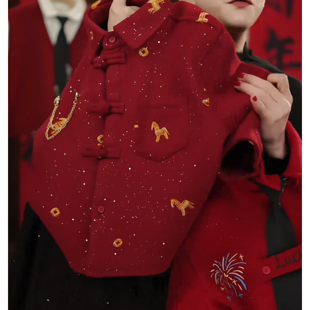 2026新款儿童冬季新款加绒保暖喜庆拜一体绒年服男童上衣衬衫外套