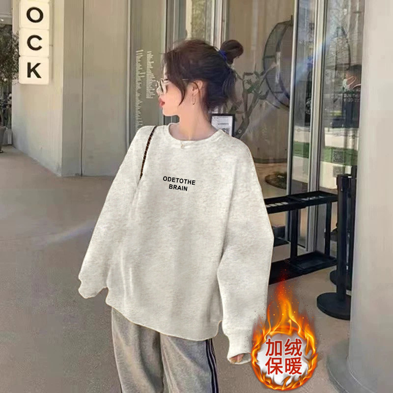 美式复古加绒加圆领灰色卫衣女款无帽秋冬正肩上衣女秋冬2025新款