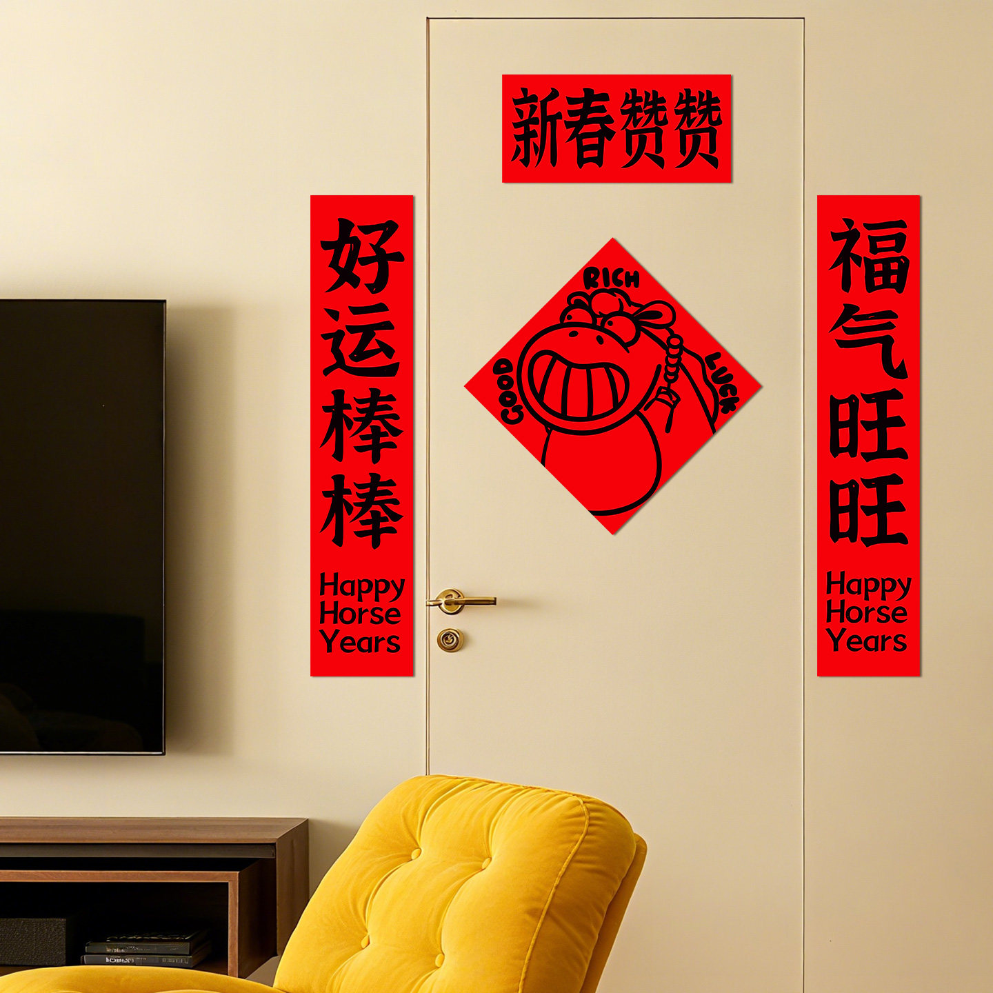 马年2026新款磁吸创意对联纸春节过年家用入户门装饰福字门贴春联