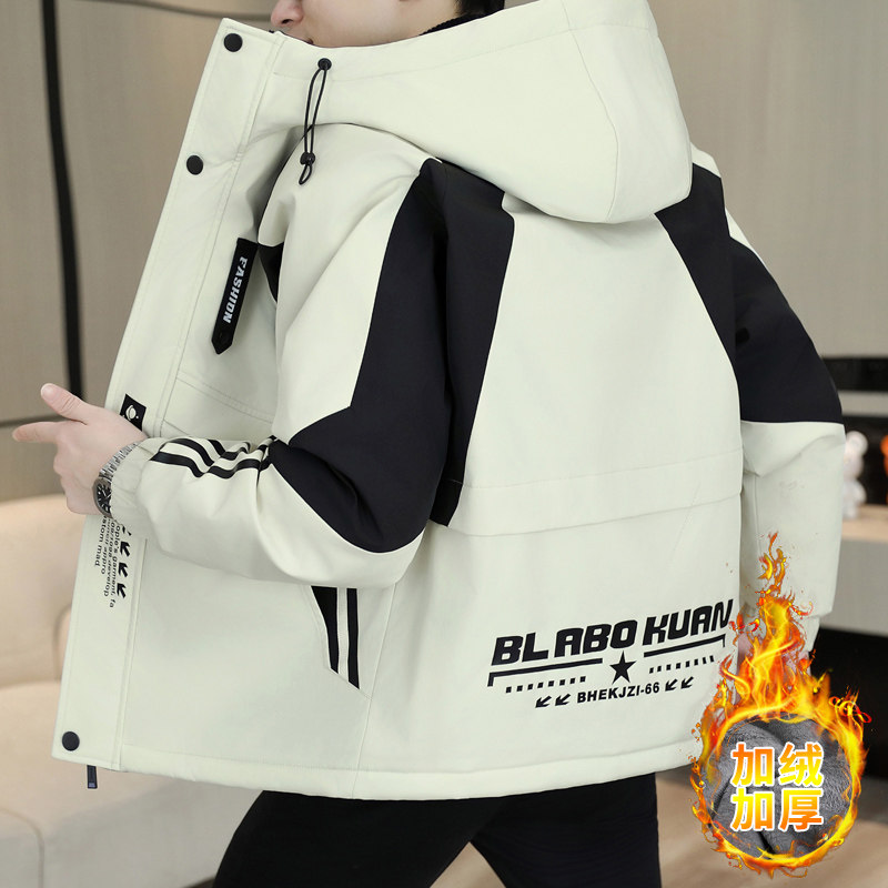 秋冬季青少年加绒加厚外套男孩初中高中学生帅气大童冬装棉服夹克