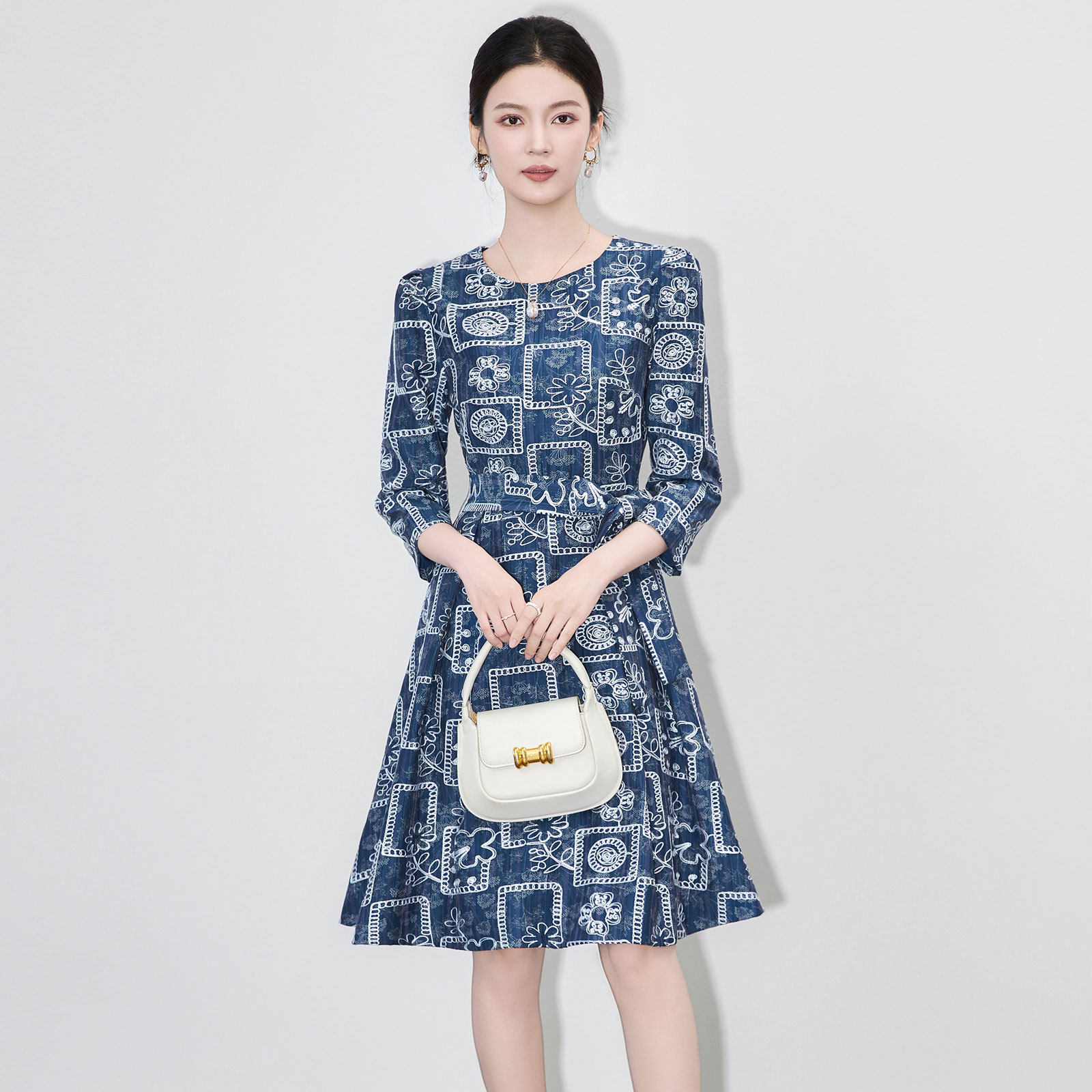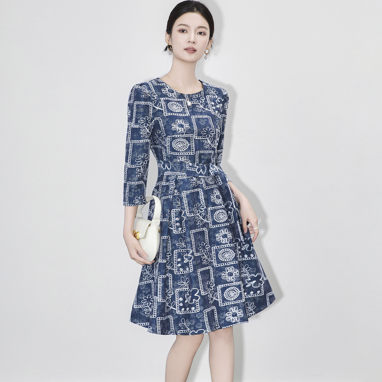 迪奥高级感轻奢名媛收腰显瘦复古提花中长款连衣裙女2025早秋新款