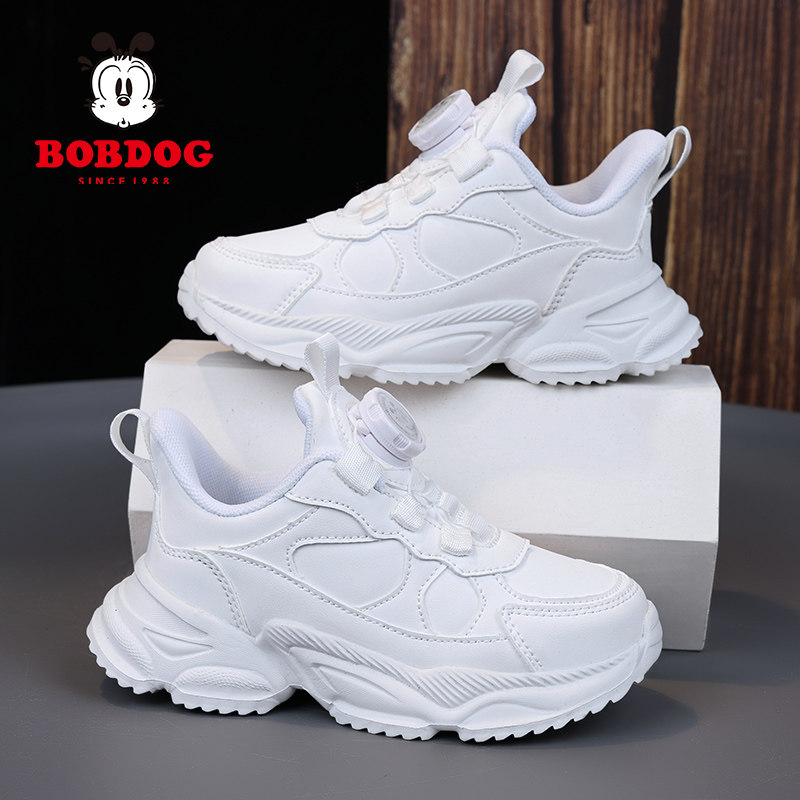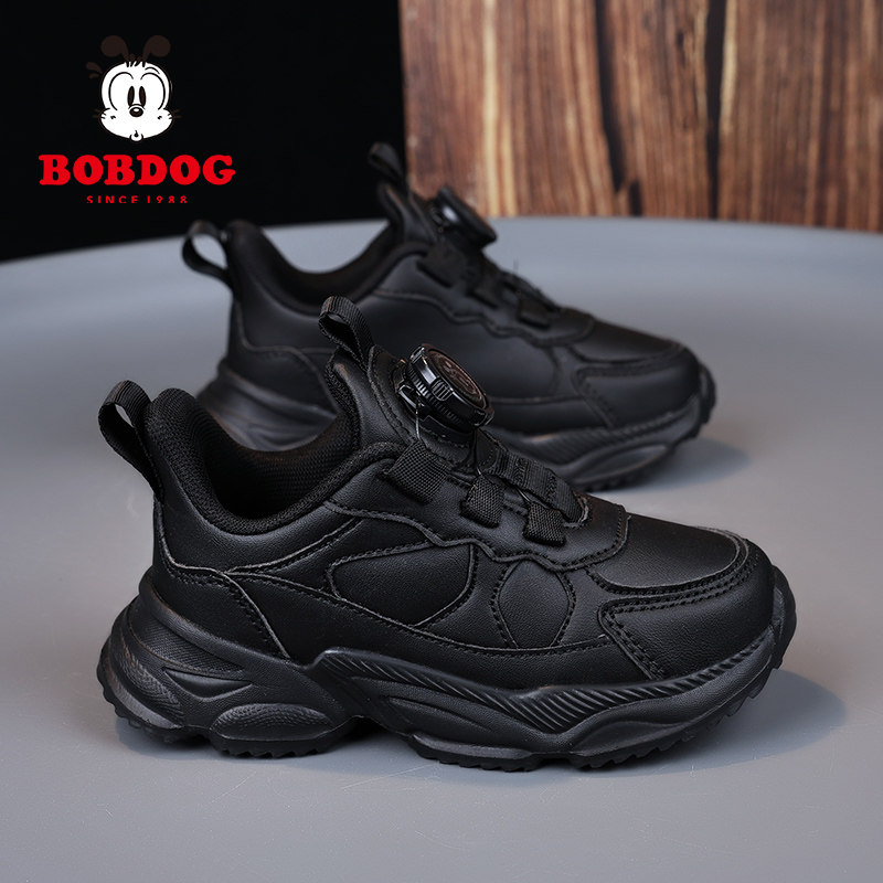 巴布豆童鞋男女童小黑鞋2026秋冬新款黑色皮面防水儿童跑步运动鞋