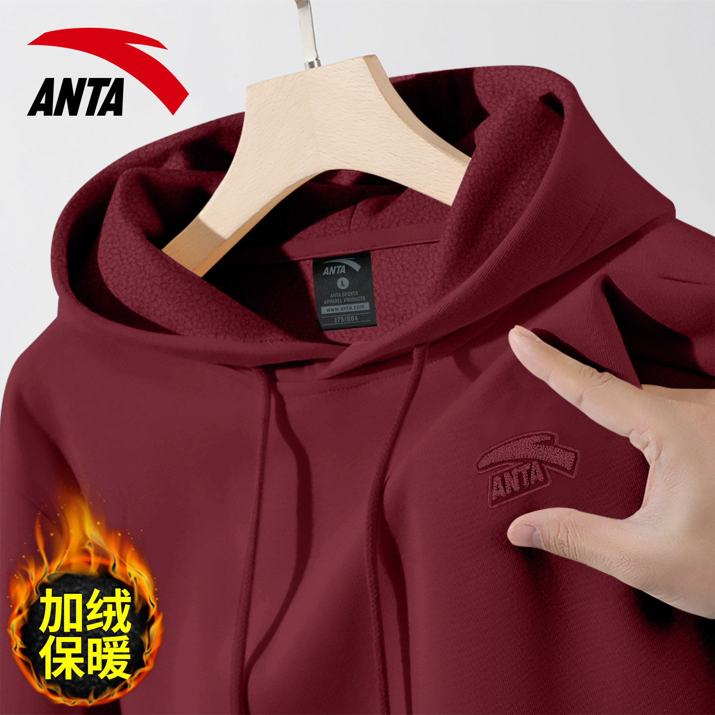 安踏加绒卫衣男款2026秋冬新款青少年连帽长袖冬季加厚保暖帽衫男