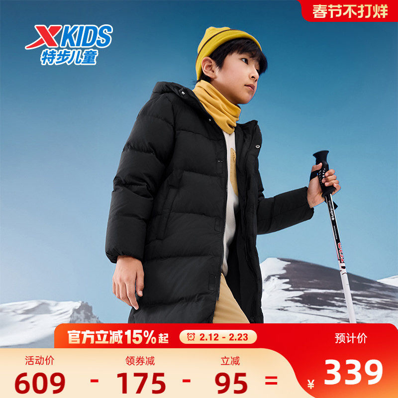 特步童装儿童中长款羽绒服男童防寒服2026年秋冬新款大童保暖外套