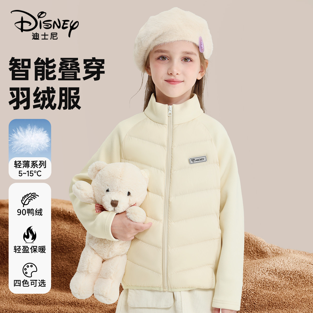 迪士尼女童羽绒内胆2026秋冬新款初中生校服神器儿童轻薄羽绒服女