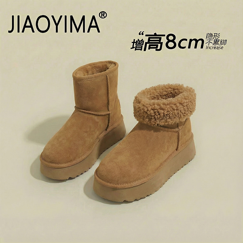 白色短筒内增高雪地靴女款2025新款冬季加绒保暖东北棉鞋厚底棉靴