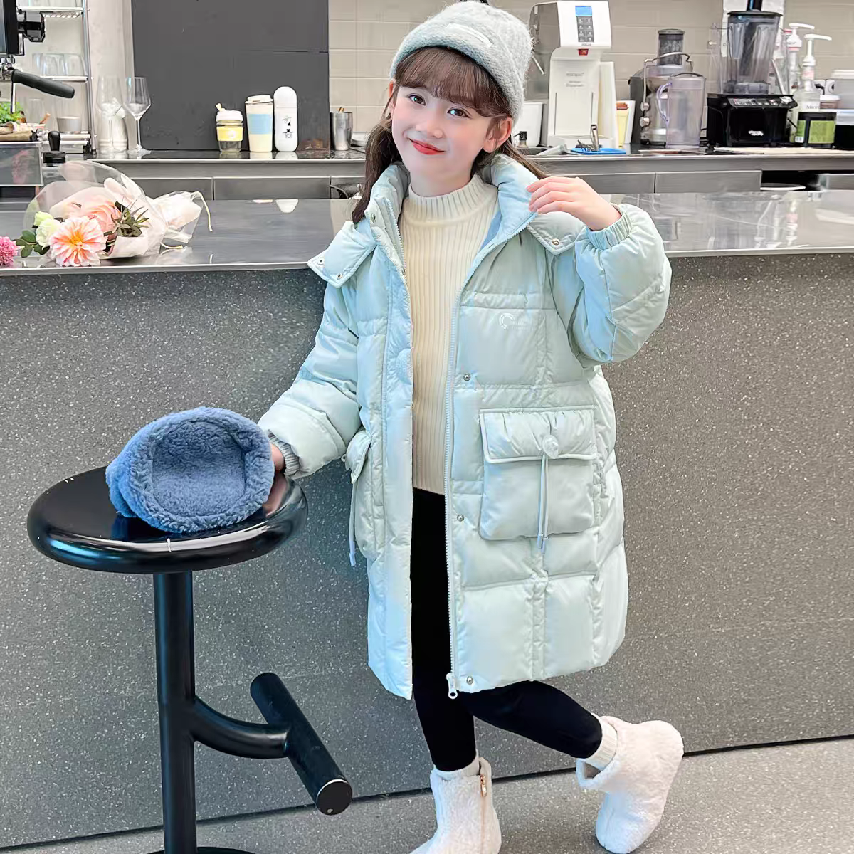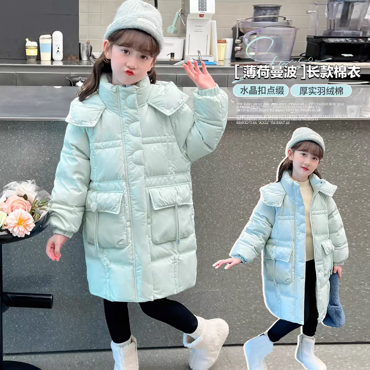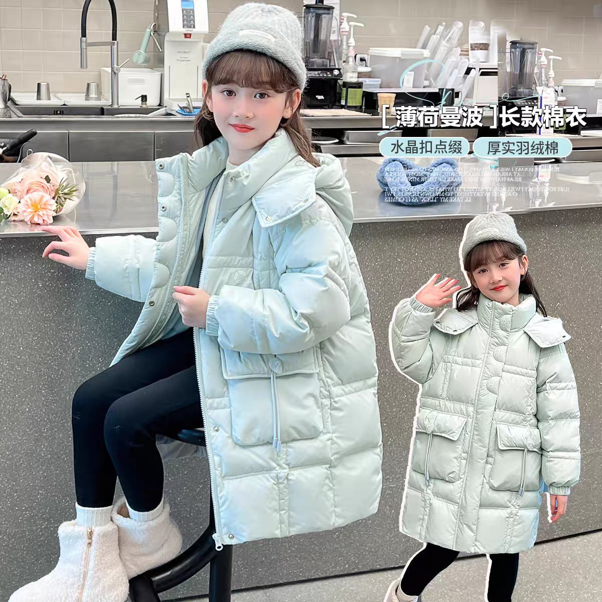 女童羽绒棉服冬装2024新款儿童洋气中大童韩版棉袄长款时髦棉衣潮