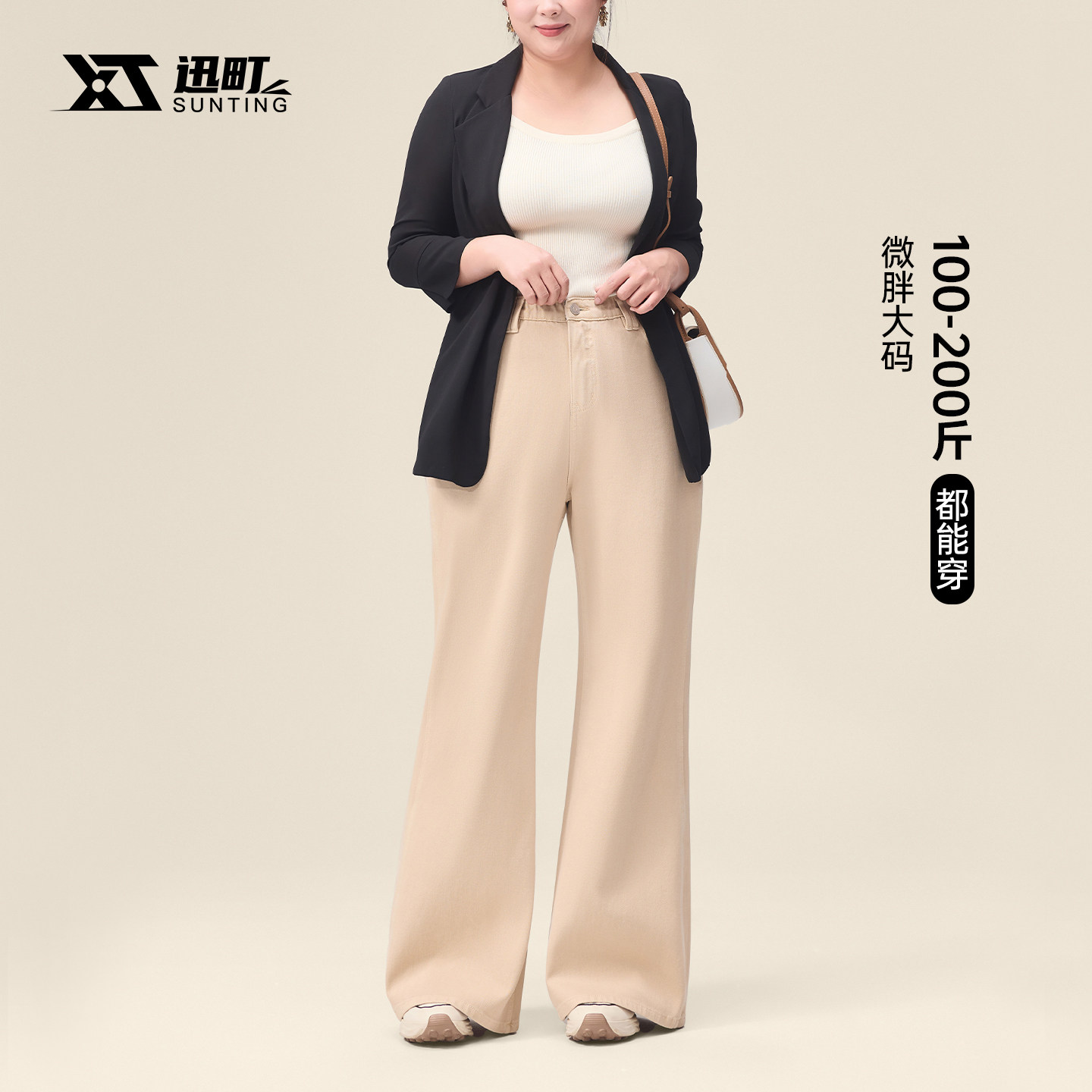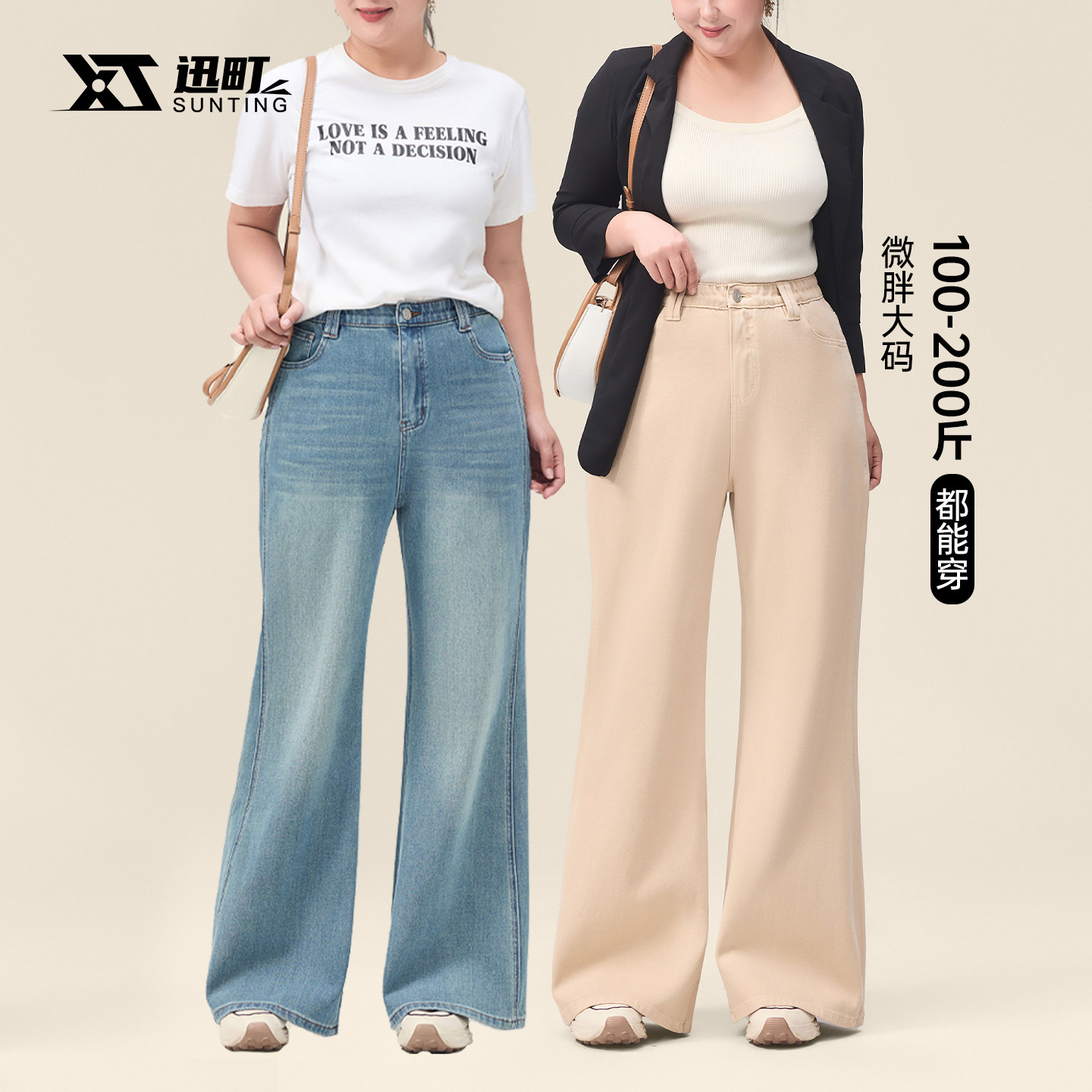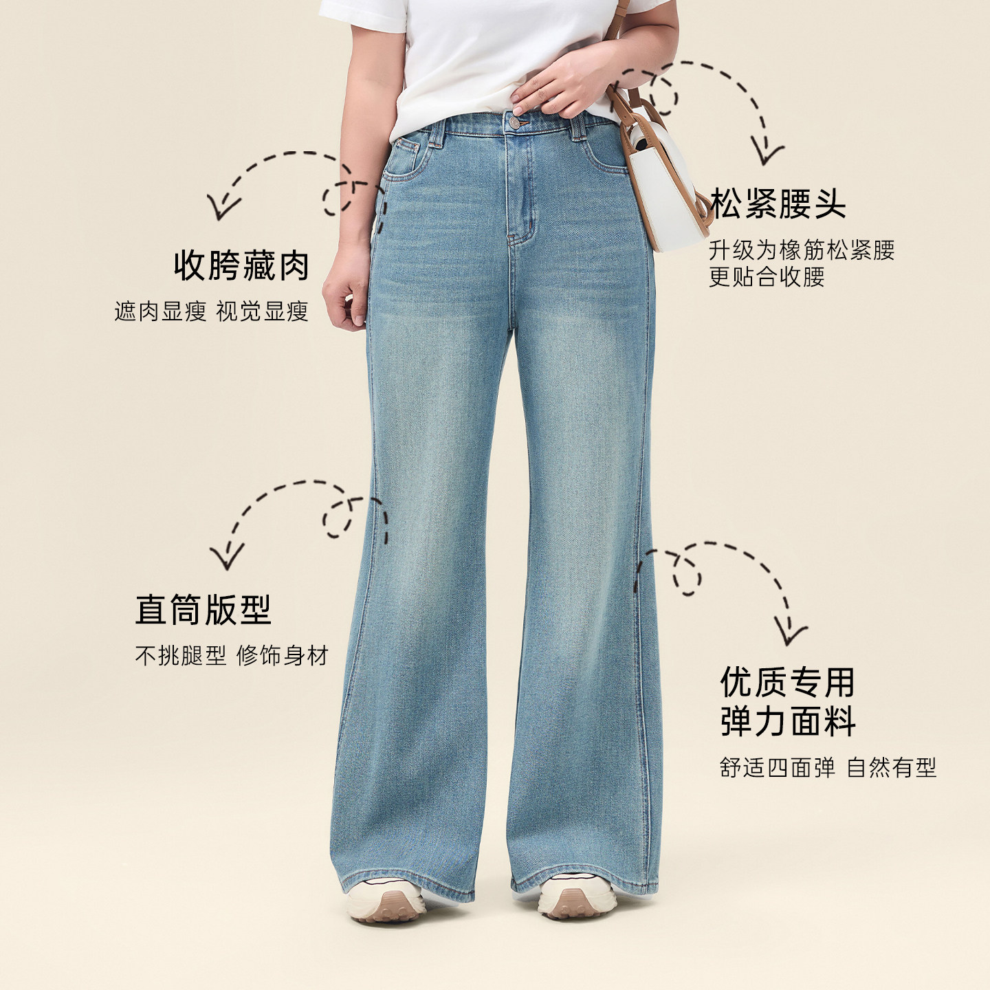微胖大码垂感牛仔裤高腰时尚直筒喇叭裤子2026早春新款