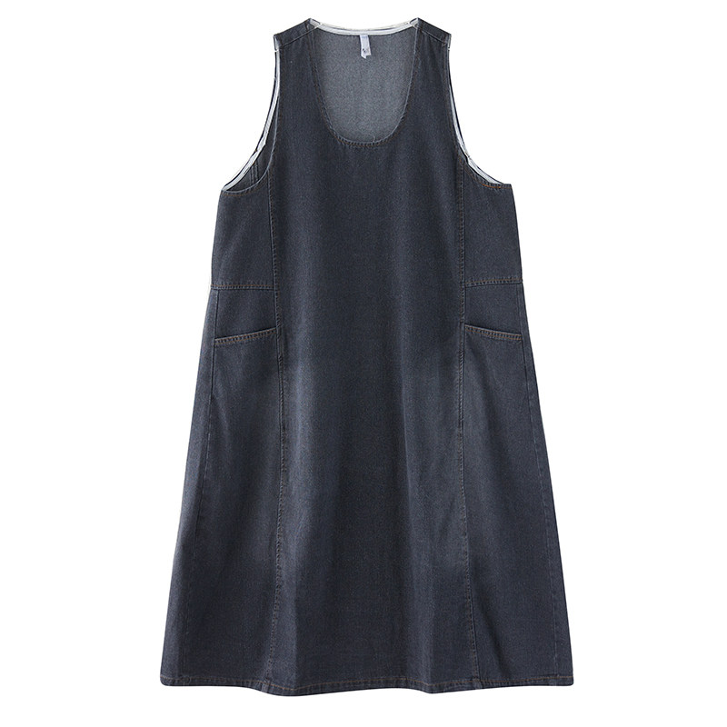 秋冬季新款大码女装文艺范胖mm宽松显瘦遮肉长款牛仔背心连衣裙