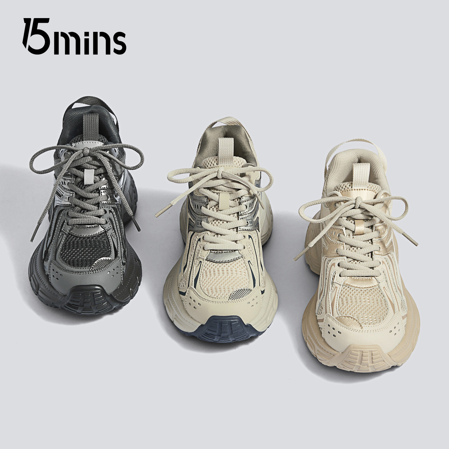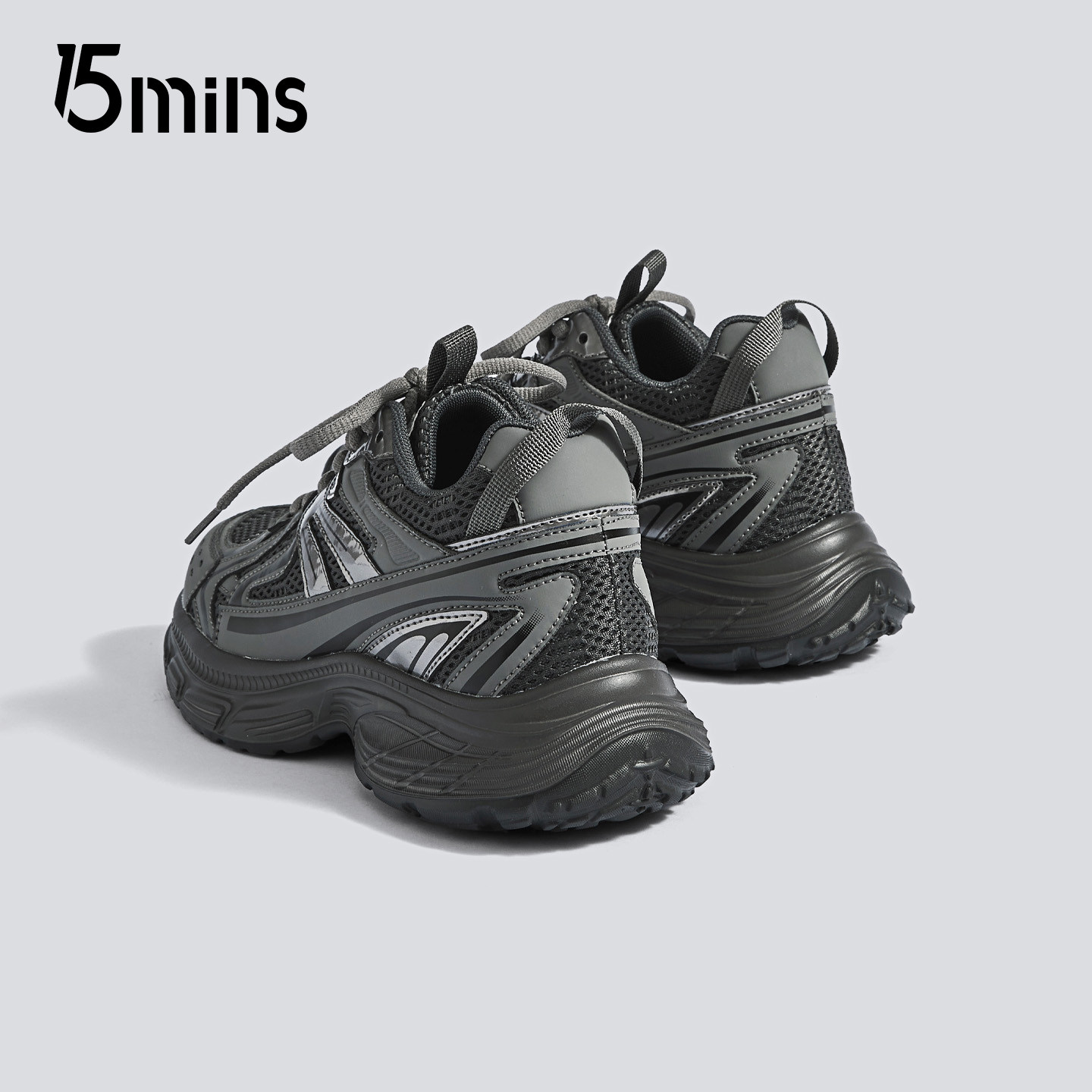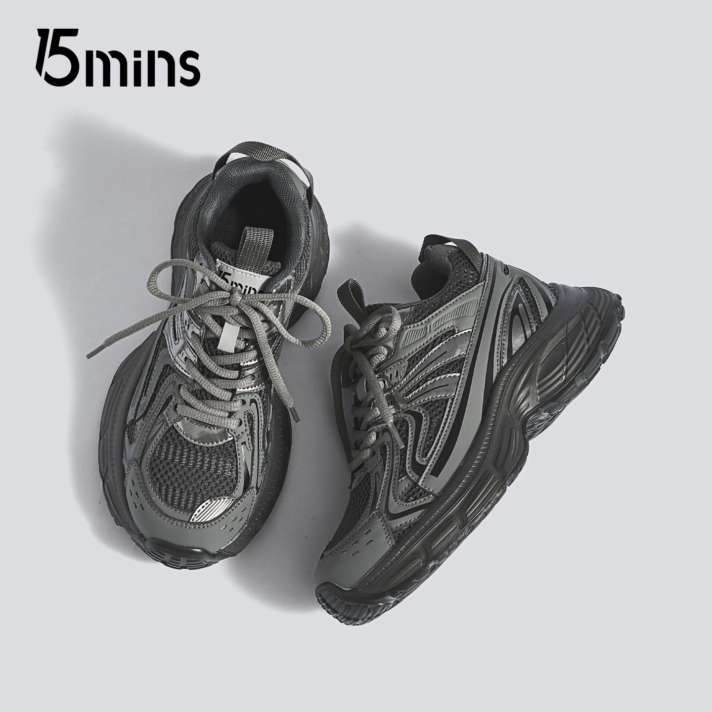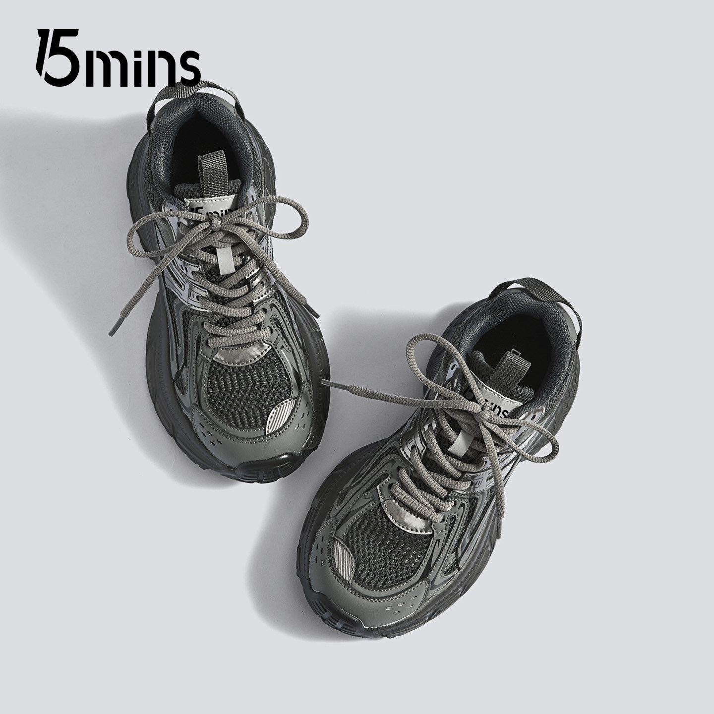 15mins厚底显脚小老爹鞋女款2025秋季新款灰色增高轻便百搭运动鞋