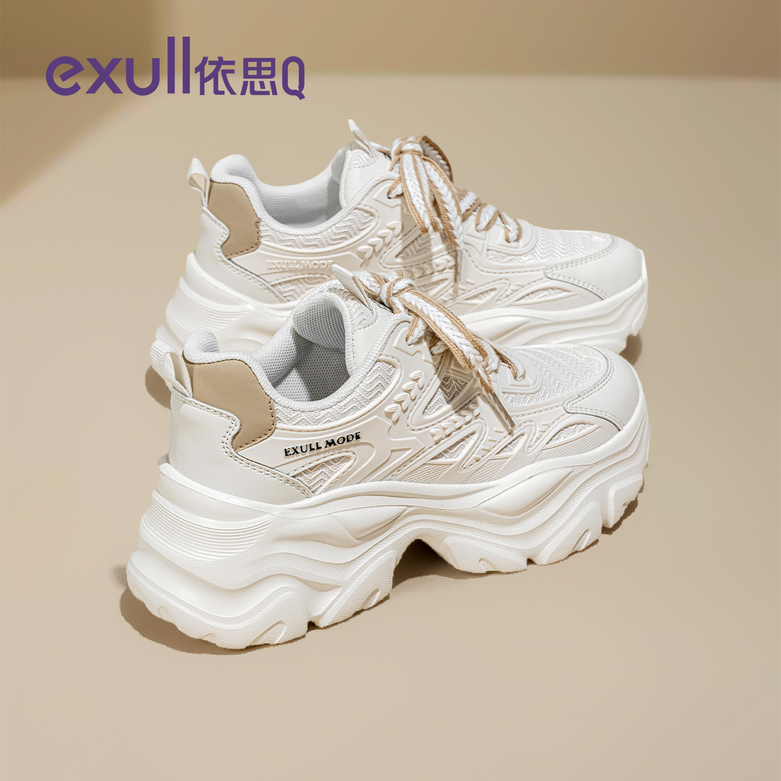 依思q厚底老爹鞋女款2026新款春季女鞋增高轻便休闲运动鞋显脚小