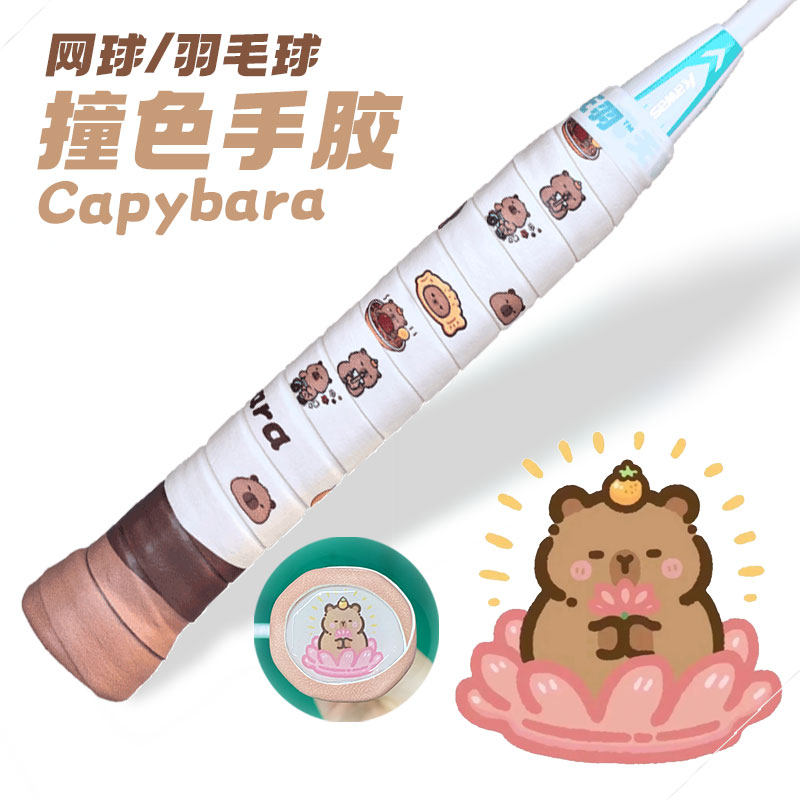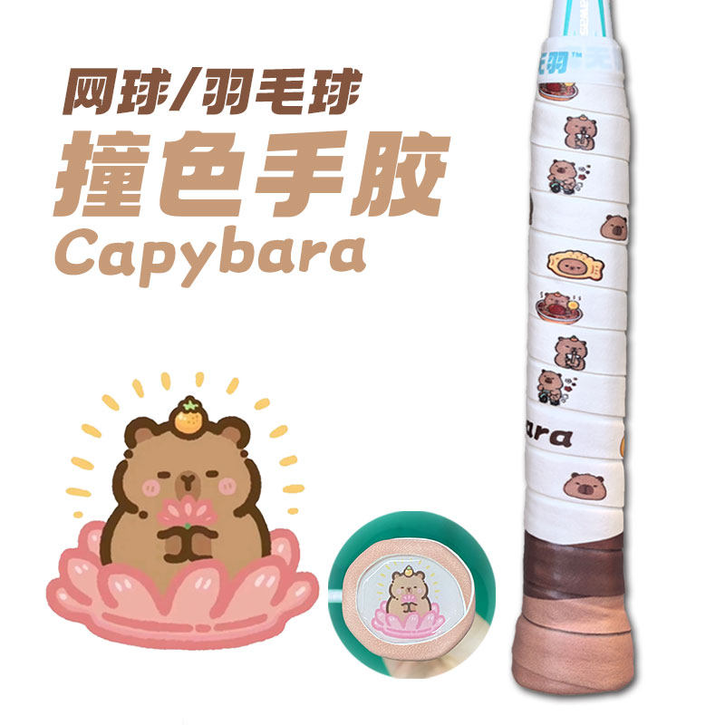 真无羽卡皮巴拉羽毛球手胶capybara网球拍卡通印花拼色送底盖贴