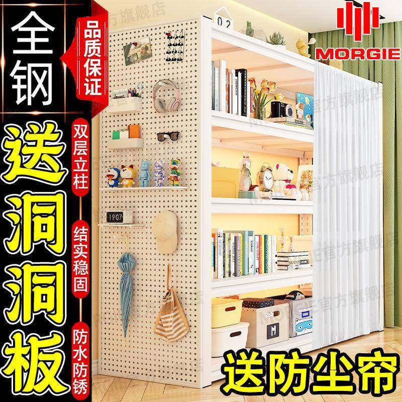 升级款洞洞板家用置物架带防尘帘仓储货架通体立柱落地收纳架铁架