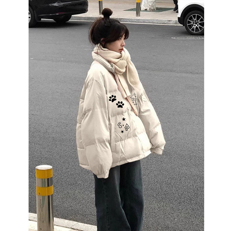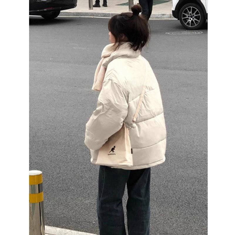 韩系宽松90白鸭绒羽绒服女冬季初中生米白色可爱减龄立领保暖外套