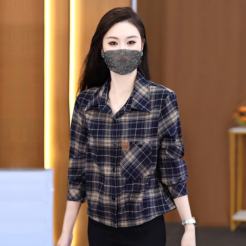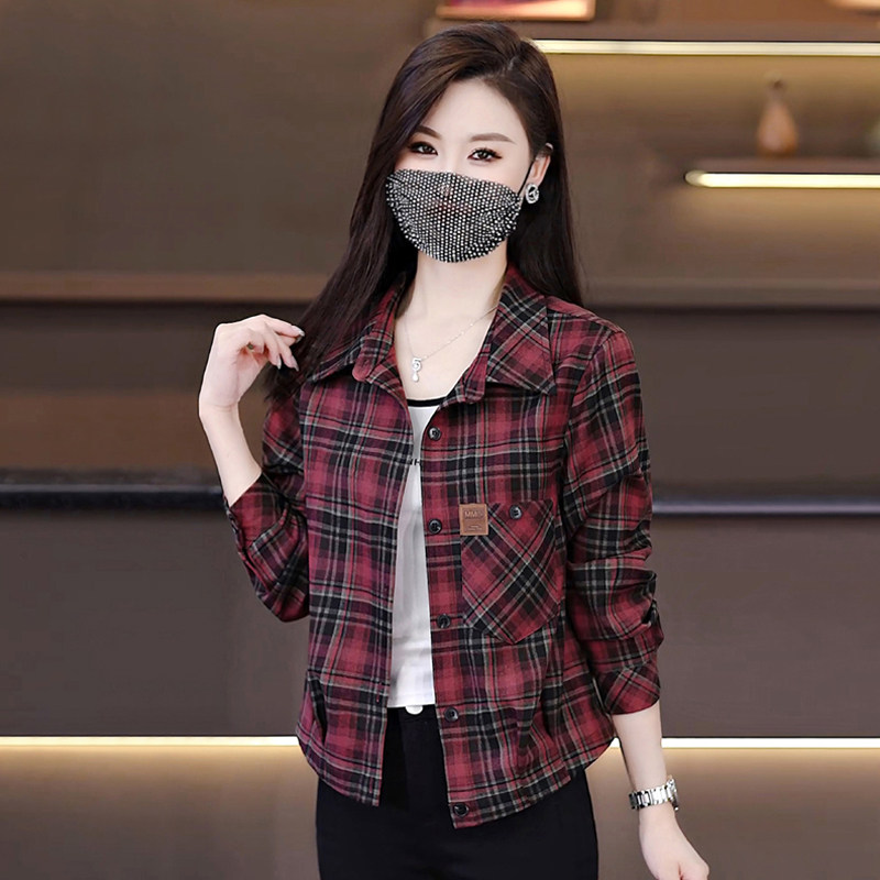 短款外套女2026早春新款时尚小个子磨毛格子衬衫休闲百搭打底上衣