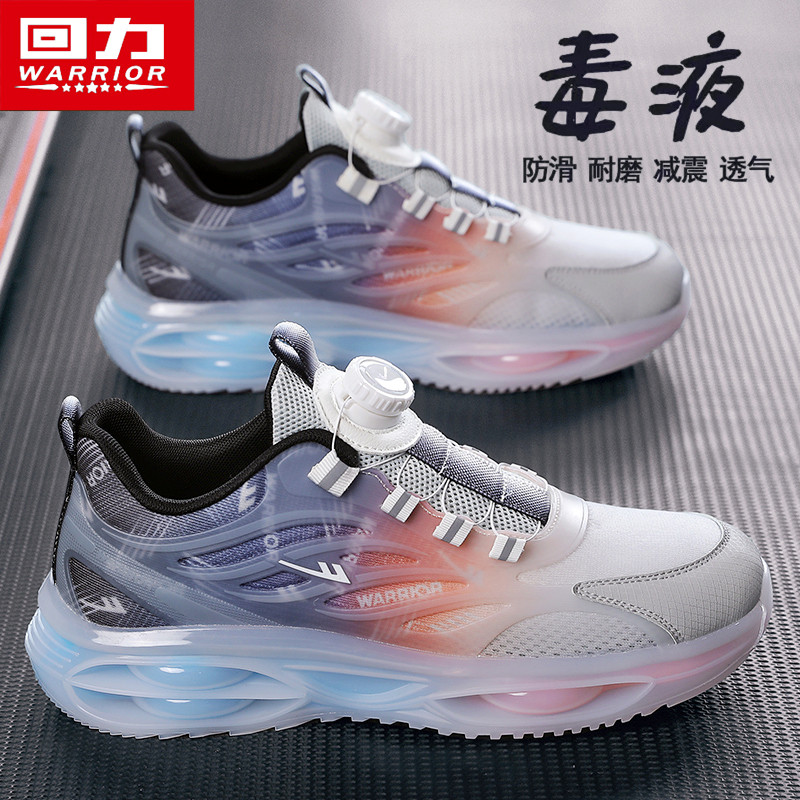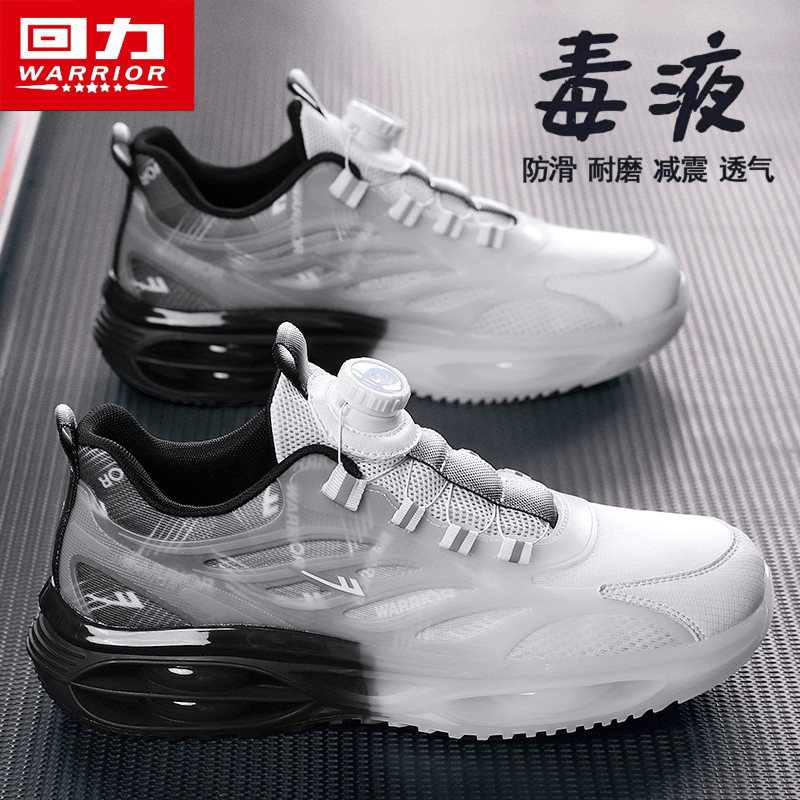 回力男鞋冬季潮牌休闲运动气垫减震跑步鞋厚底增高旋钮黑色老爹鞋