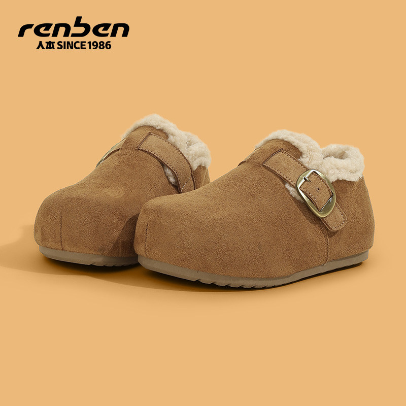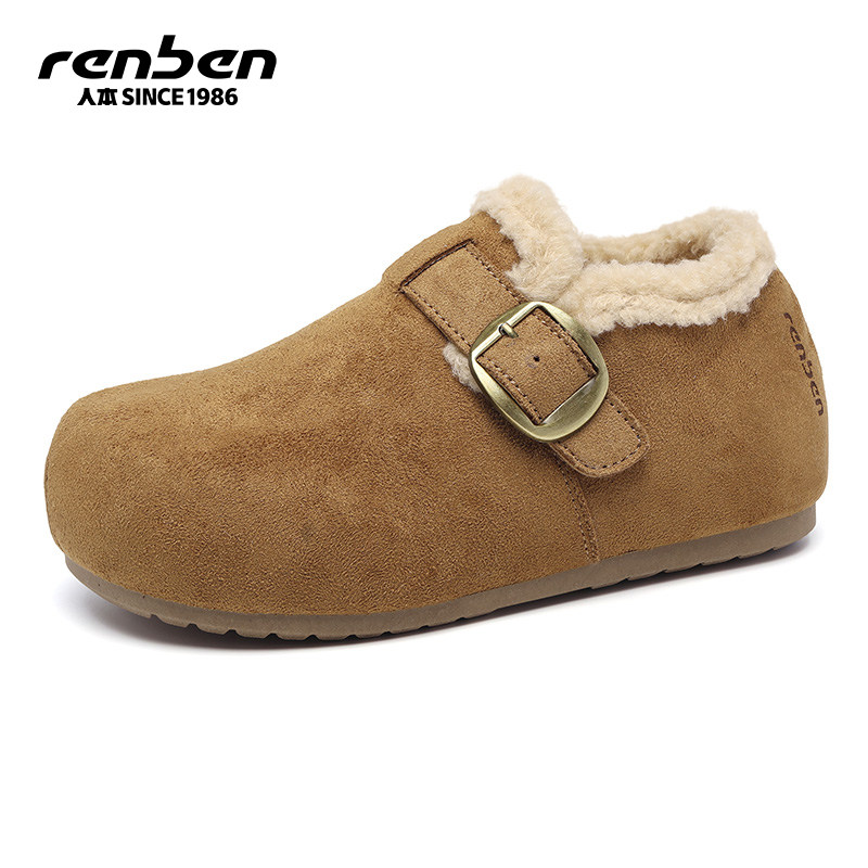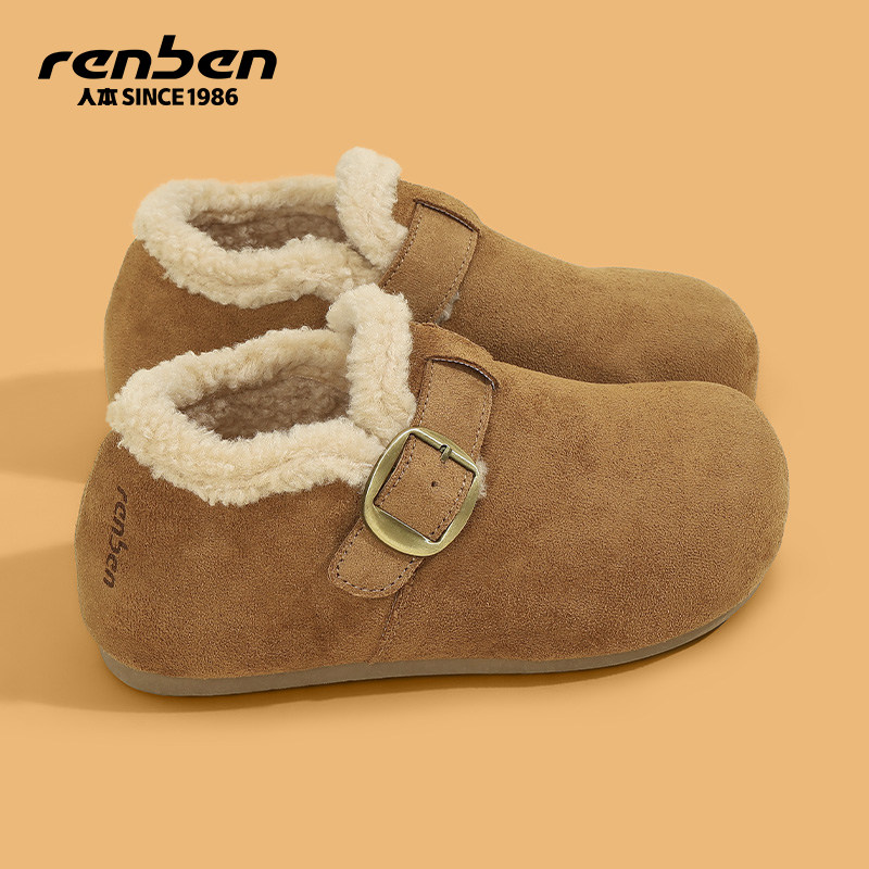 人本勃肯鞋女加绒加厚毛绒2025冬季新款外穿厚底内增高保暖二棉鞋